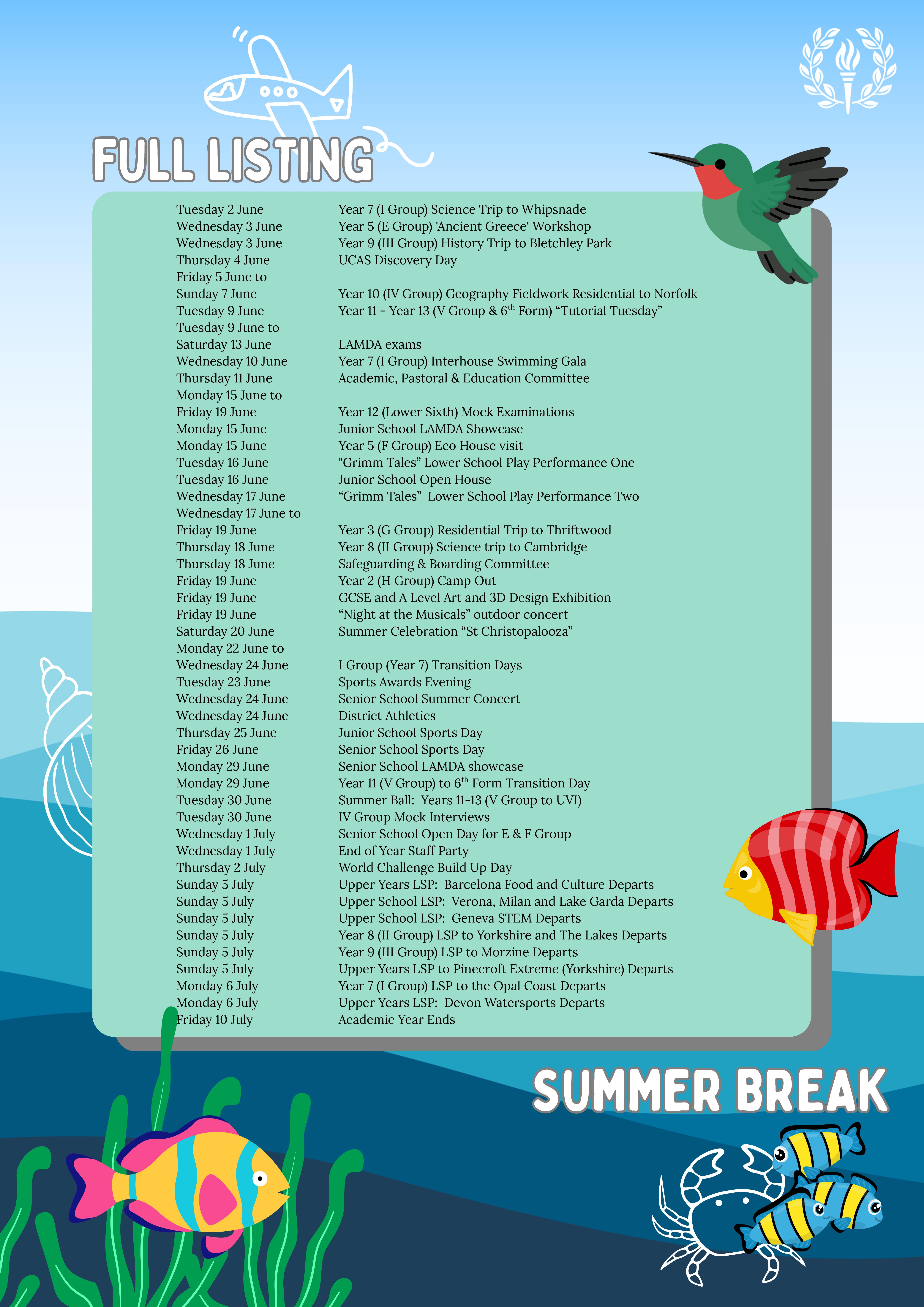 St Chris What's On - Summer Term 2026
