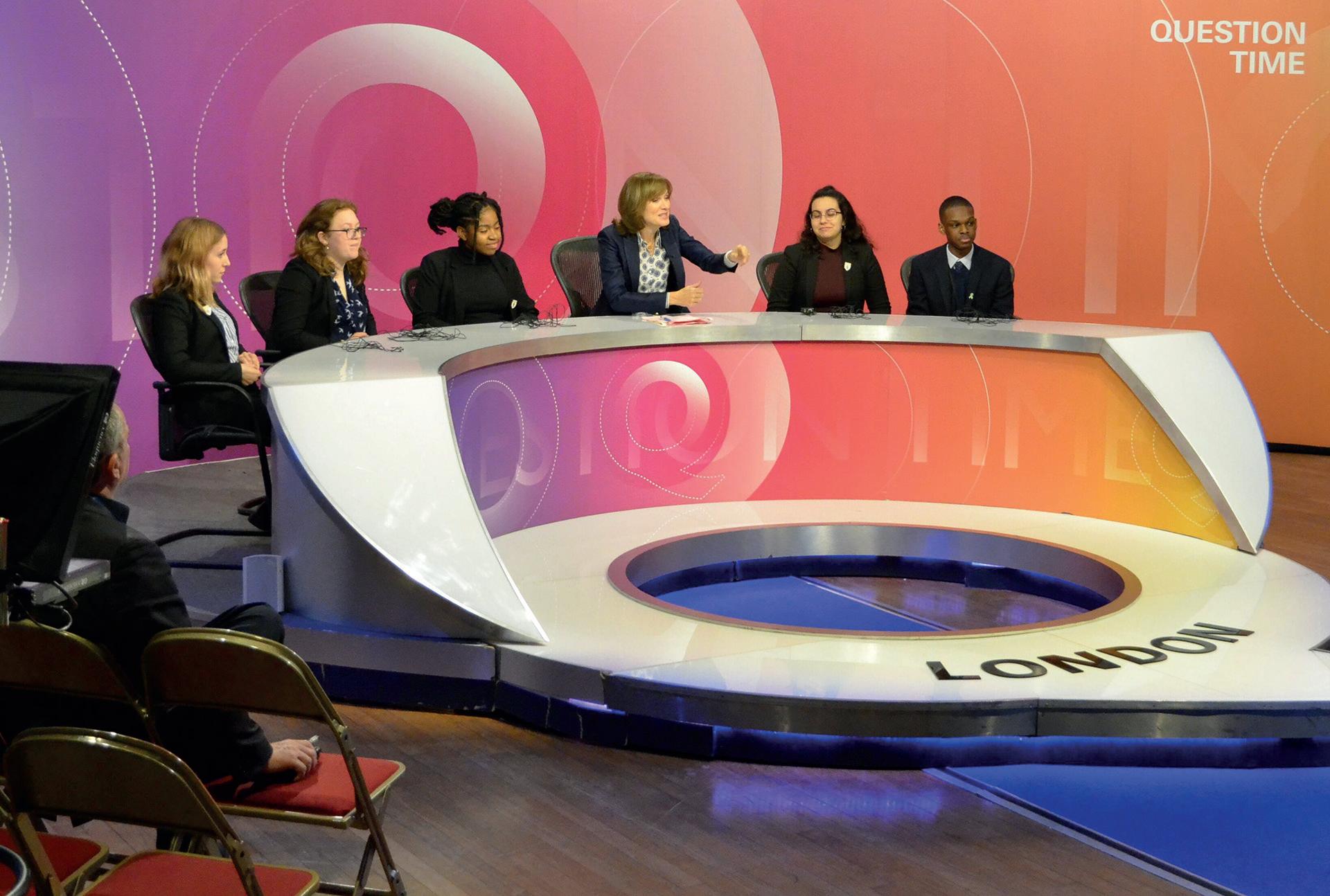 Later on in the day, a group of students got to have their moment with presenter Fiona Bruce as they took part in a sound check and show rehearsal. Fiona put the students through their paces asking them their thoughts on major political topics such as Brexit.