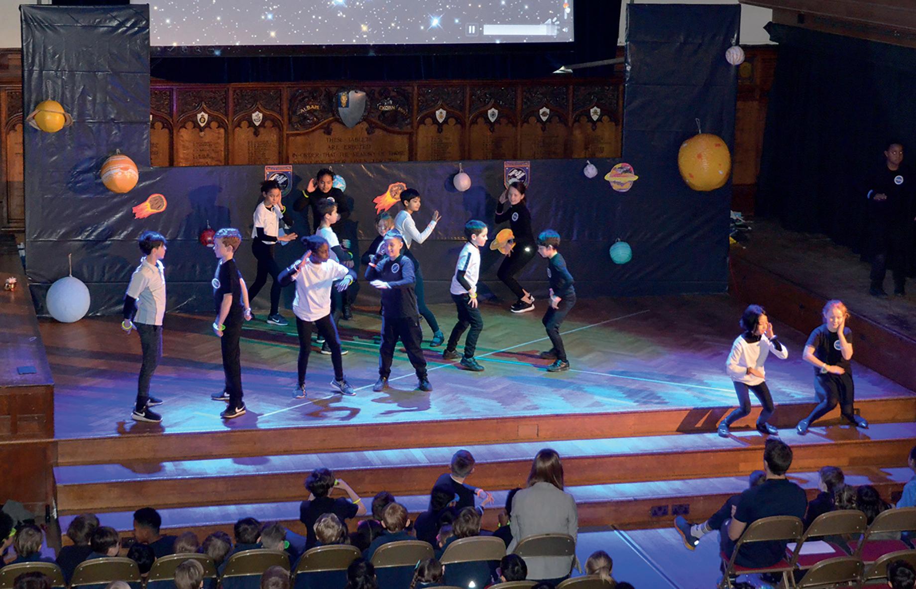 In the Lent term, Year 5 delivered an ‘Out of this World’ Showcase performance for the Junior School and parents that consisted of a ‘How to’ guide for living on the International Space Station, a trip to space with Laika, the first dog in space, and gravity defying dance moves to spectacular space tracks. (right)
