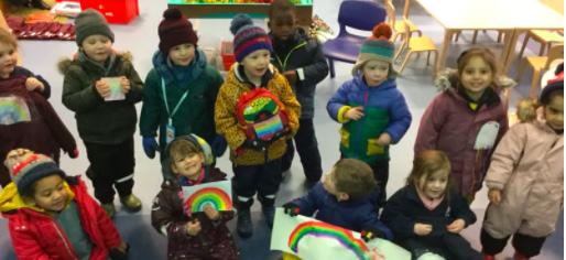 Nursery children at St Dunstan’s arrived at school on the Monday following the news of Headmaster’s senior assembly with colourful rainbows.
