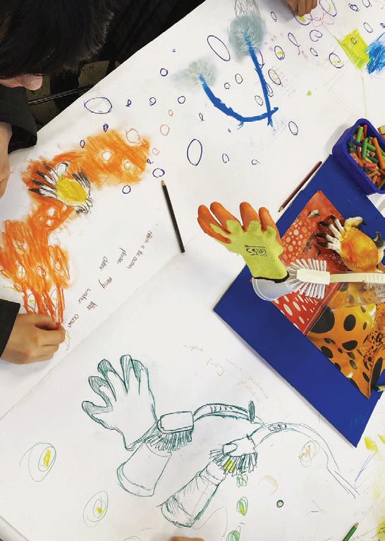 Year 7 have been balancing objects to make sculptures as tall or as wacky as possible, responding to the work of artist duo Fishli and Weiss. These towering sculptures of kitchen brushes, sponges, spoons and crabs, inspired some dynamic, fun collaborative drawings which will be developed into ceramics. 7F1 made a brilliant performance and sound piece responding to their drawing.