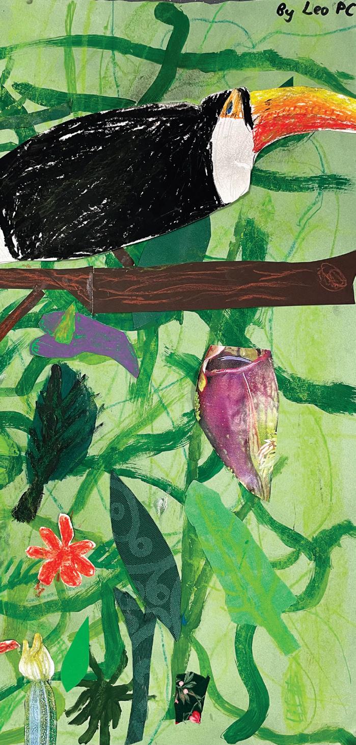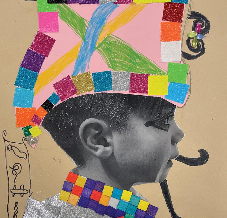 ear 4 have created some wonderfully colourful, mixed media artwork which started life as a simple black and white photograph of their profile. They added details using collage techniques and felttip pens.