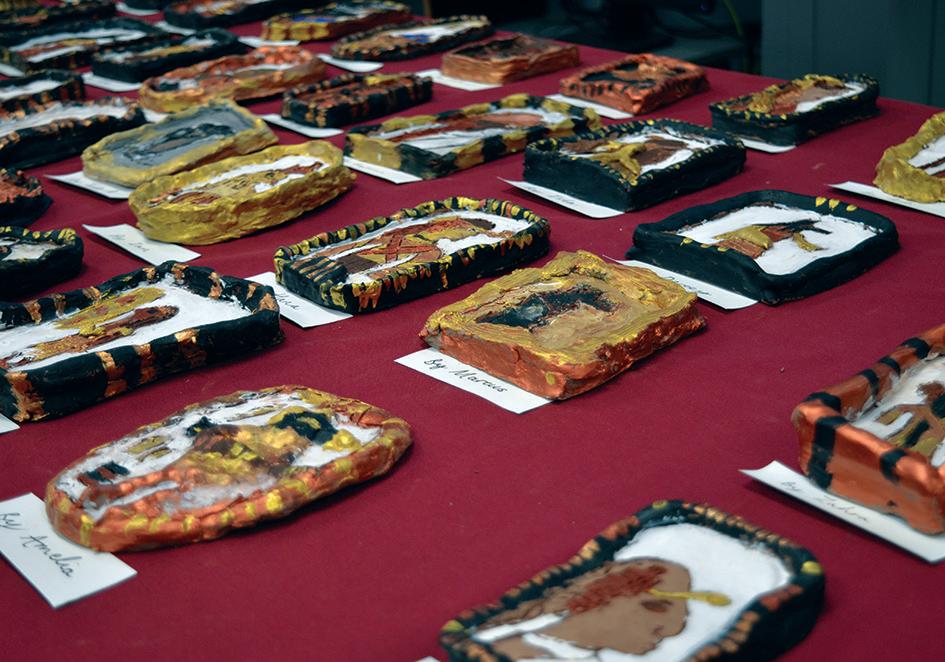 Year 4 pupils also were working with clay to produce some wonderful Ancient Egyptian plaques. They used both impressed and relief methods to create their 3D pieces and worked from designs in their sketchbooks. They painted them once they were dry.