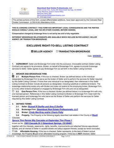 1503 Cascade Dr #3 - Sample Exclusive Right-To-Sell Listing Contract 1503 Cascade Dr #3