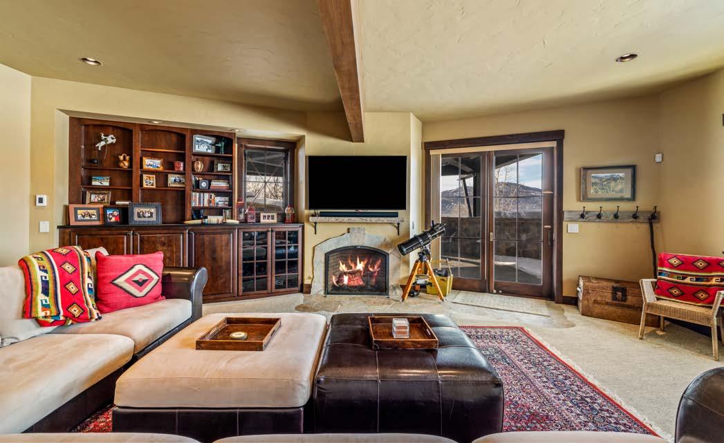 Upstairs, the loft offers a versatile office/ library, a dedicated workout room and a full bath. A climb to the top of the tower reveals breathtaking 360-degree panoramic views stretching from the ski area to Sleeping Giant. The lower level is designed for relaxation and play, featuring a state-of-the-art theater room and a spacious family/game room with a fireplace that opens to a covered grotto and private hot tub. Three additional bedrooms, two sharing a bath, provide comfort for guests and a private steam room offers the perfect retreat after a day on the mountain. Additional features include a heated 3-car garage and a generous mudroom built for mountain living.