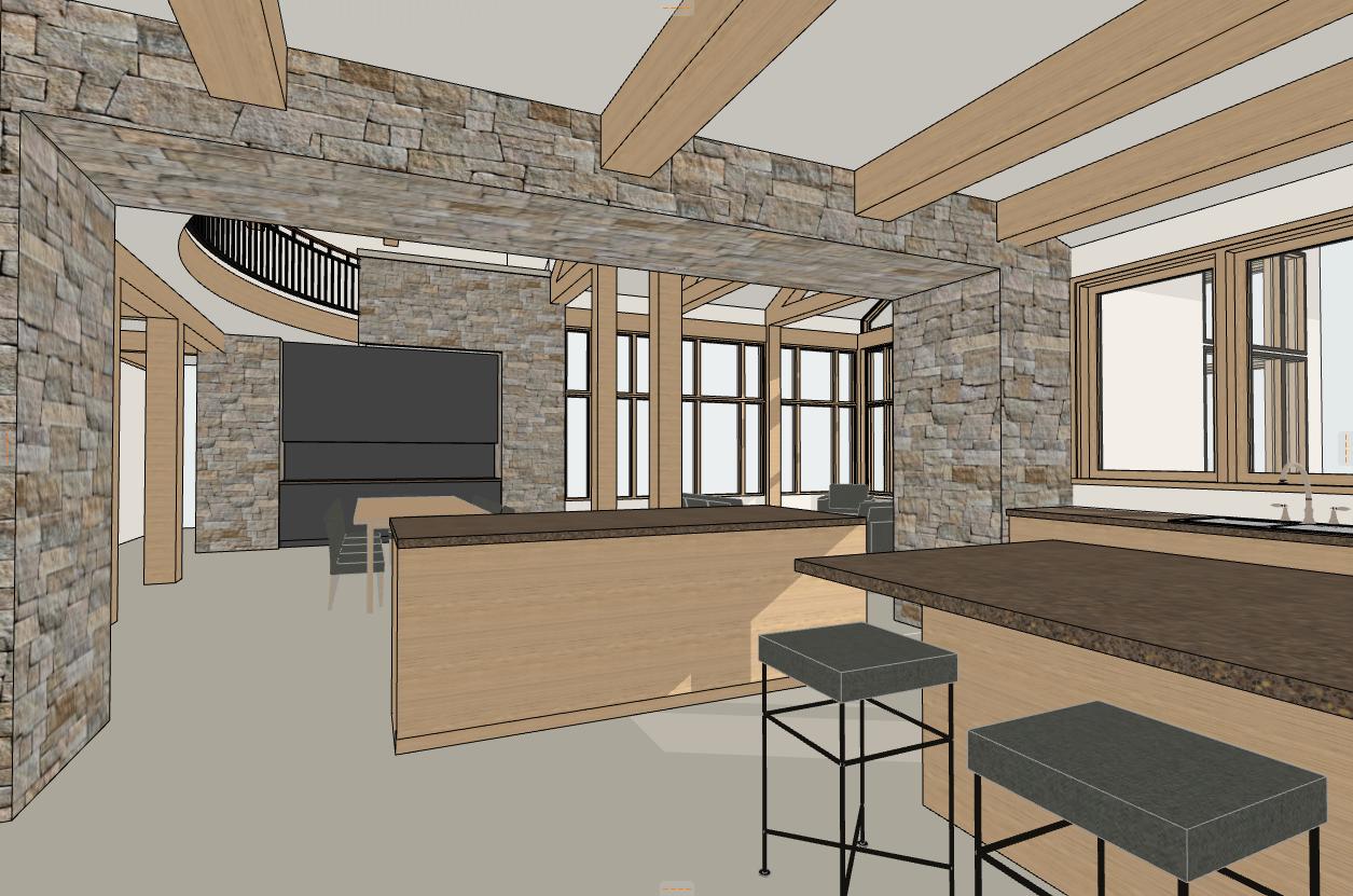 PORTAL OPENING OPENED UP BETWEEN EXISTING STONE PILLARS WITH NEW BAR ISLAND