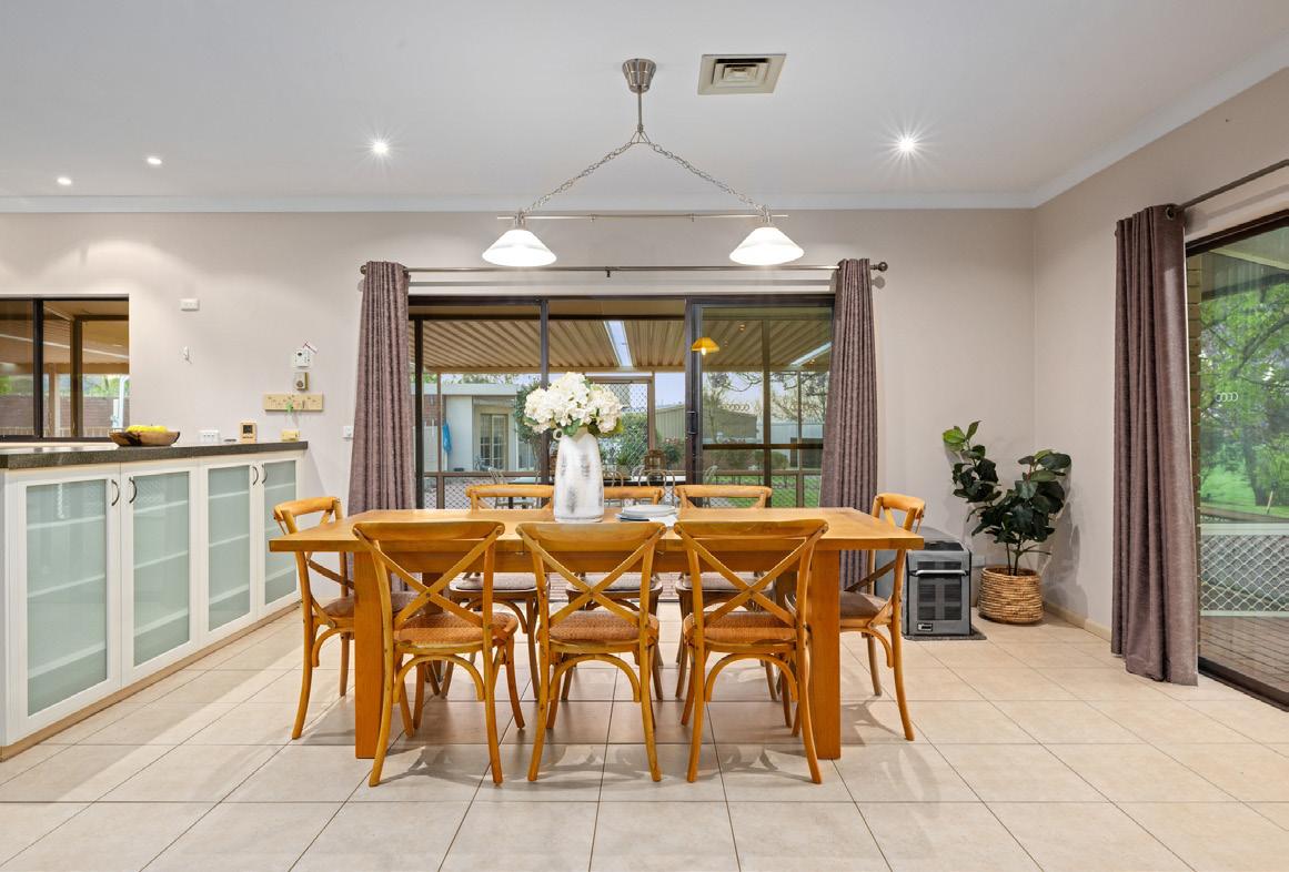 Efficiency and sustainability are key features, with solar panels and three large concrete water tanks—two approx. 20,000 litres and one approx. 50,000 litres—attached to the house roof and fillable from dams in the paddocks. The home is also connected to town water, ensuring a reliable and abundant supply.