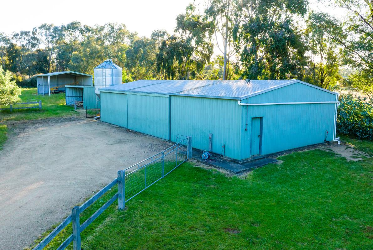 The farm features a laneway to new steel stockyards with a cattle crush, water troughs in every paddock, and an 18x9m machinery shed with large sliding doors.