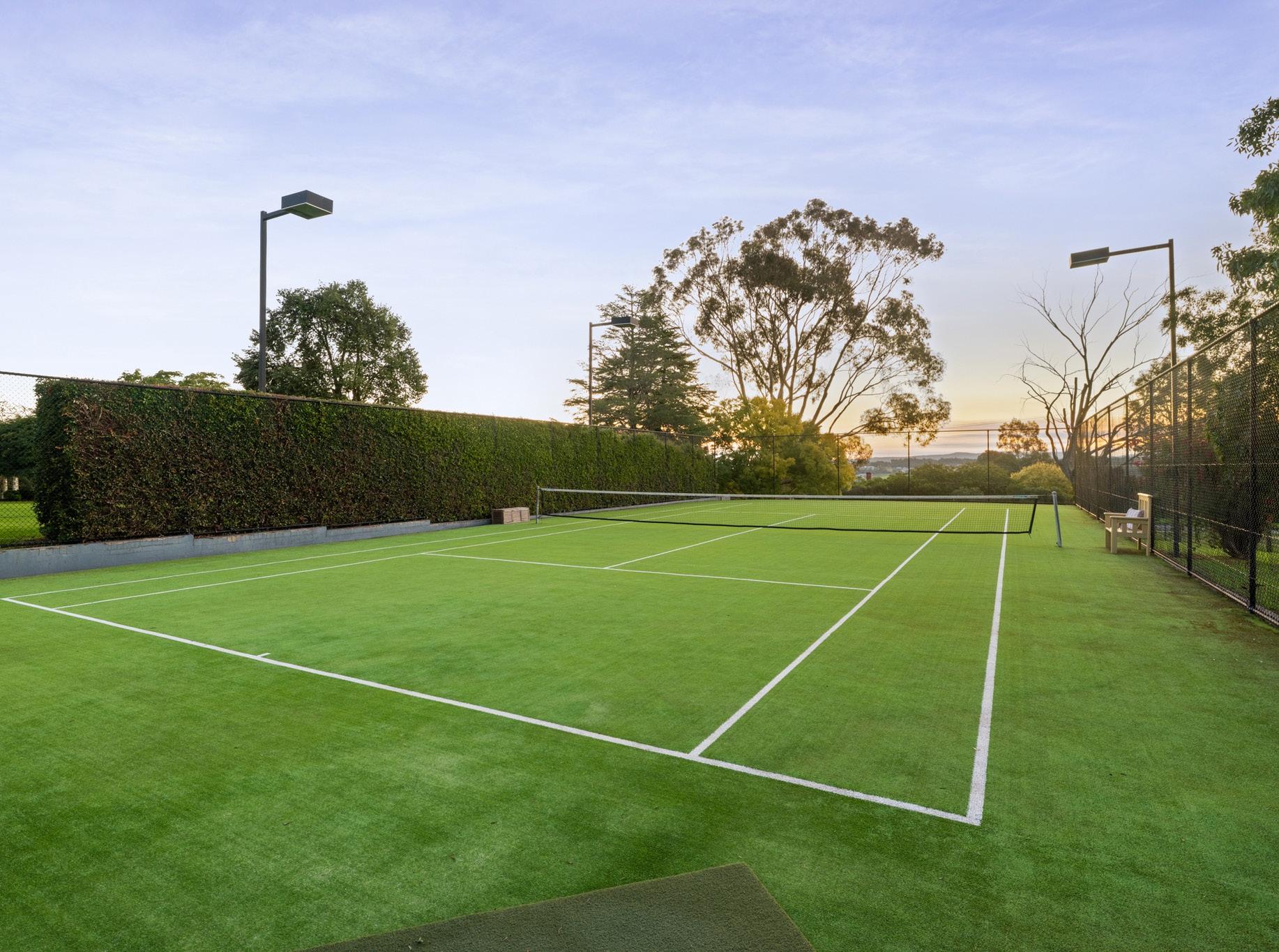 - Full-size tennis court with lighting