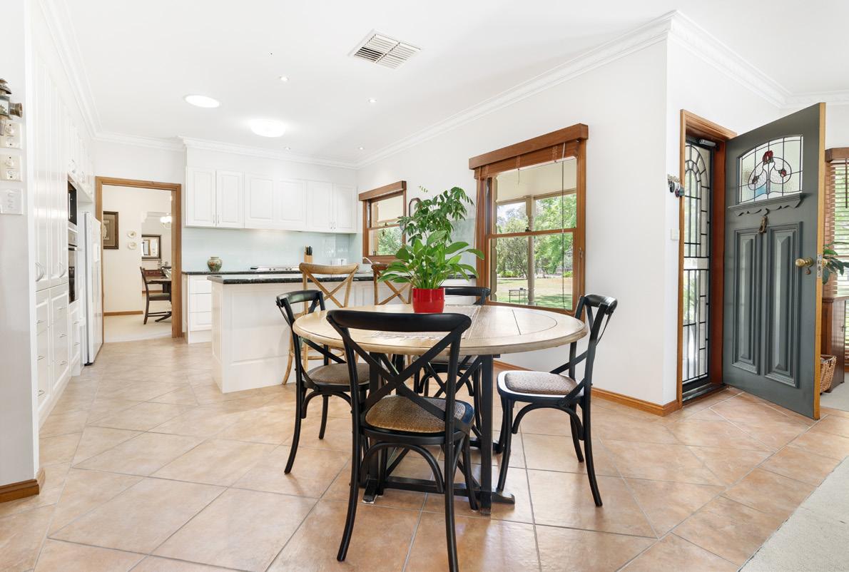 This single-level home is designed to maximize natural light and showcase picturesque rural views, featuring both formal and informal living areas. At its heart lies an open-plan family and dining space that effortlessly connects to bluestone-paved outdoor entertaining areas, including a north-facing front patio and a large covered alfresco area that overlooks meticulously maintained gardens and a stunning tiled in-ground mineral swimming pool.
