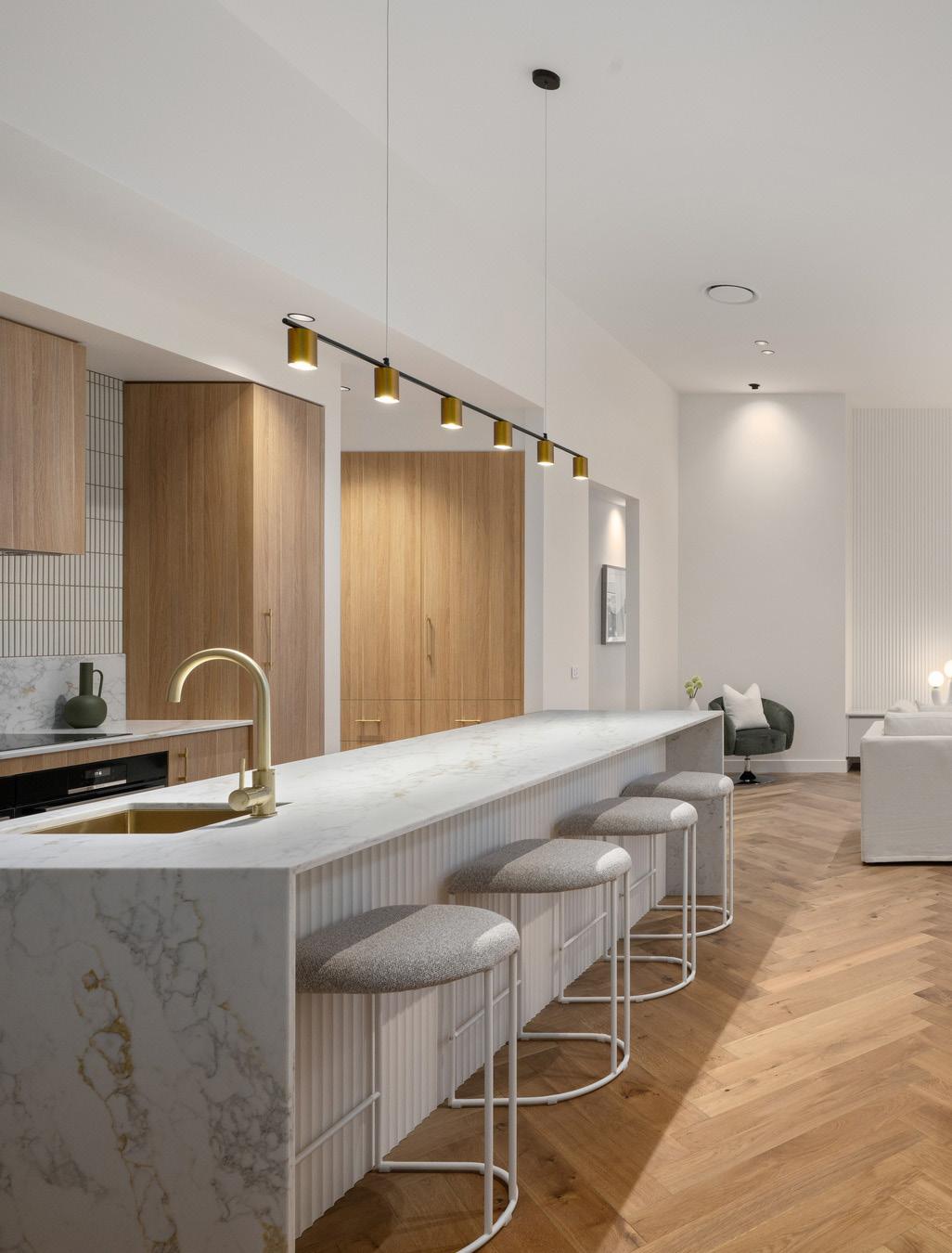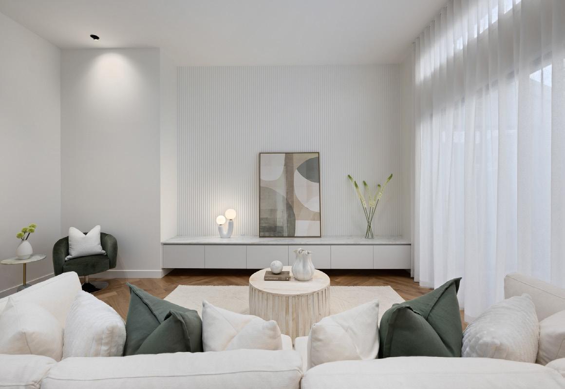 From the street, the bold architectural façade commands attention, a striking introduction to the design brilliance within. Step inside and experience a harmonious interplay of textures and tones, where natural finishes, herringbone oak floors, plush wool carpets, and bespoke tiling combine to evoke warmth, elegance, and enduring quality.