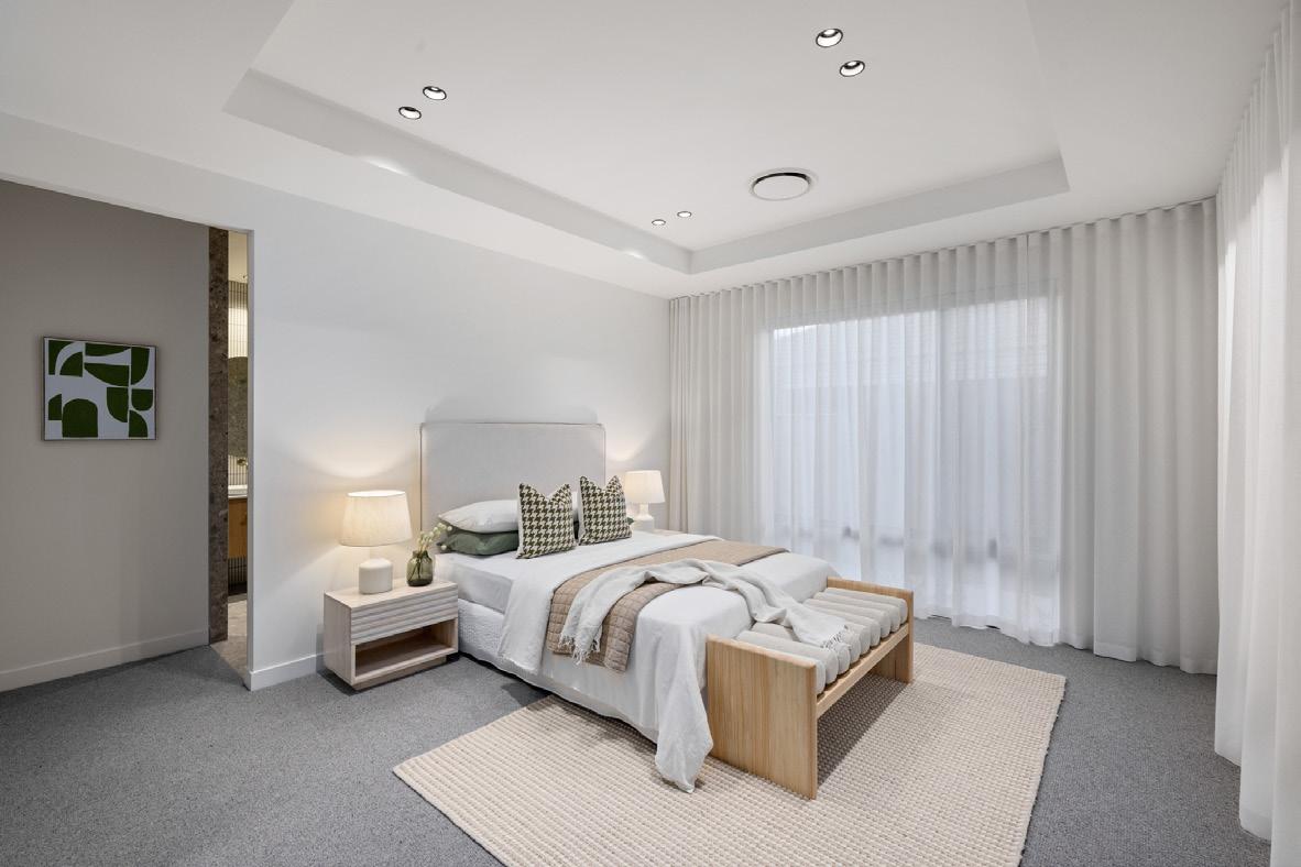 The main suite is a private sanctuary of calm and indulgence, featuring an expansive walk-in robe and a sublime ensuite finished with double vanities, underfloor heating, a generous walk-in shower, and floor-to-ceiling designer tiles. Three additional bedrooms with built-in robes are thoughtfully positioned, accompanied by a chic central bathroom and a separate toilet for ultimate convenience.