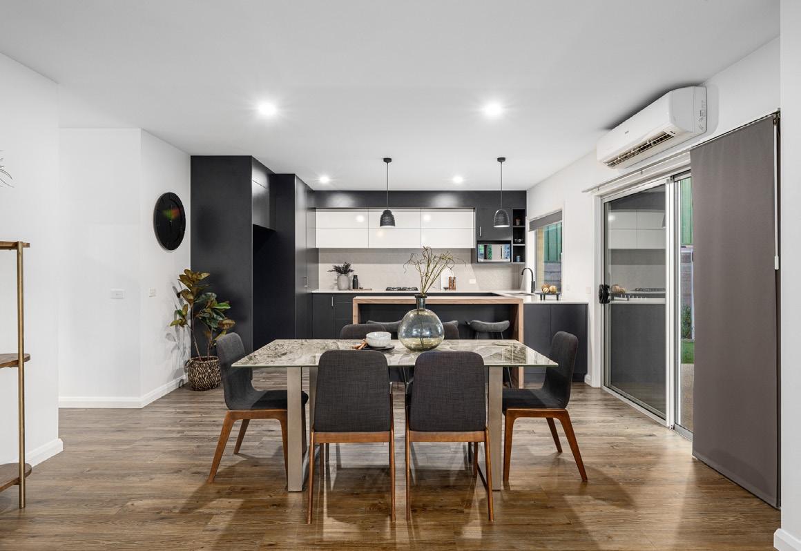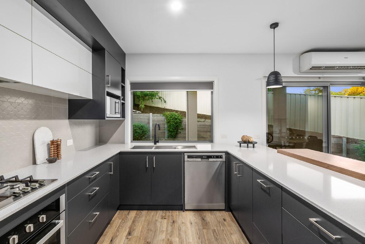 From the moment you step inside, the home reveals a bright and welcoming atmosphere. Soft neutral tones and abundant natural light enhance the sense of space, flowing seamlessly throughout the open plan living and dining zones. At the heart of the home sits a beautifully appointed kitchen, featuring stone benchtops, quality appliances and a breakfast bar that anchors the space and invites connection. A split system and ambient gas fireplace elevate the living area, creating a cosy yet sophisticated environment ideal for entertaining or relaxing through the cooler months.