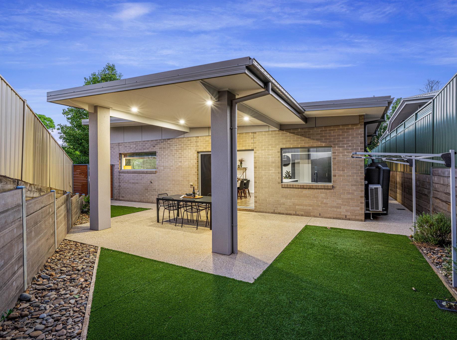 Glass sliding doors open to a covered alfresco area, perfectly positioned to capture the morning sun. Overlooking a private, easycare yard, this outdoor zone offers a relaxed setting for year-round entertaining with minimal upkeep.