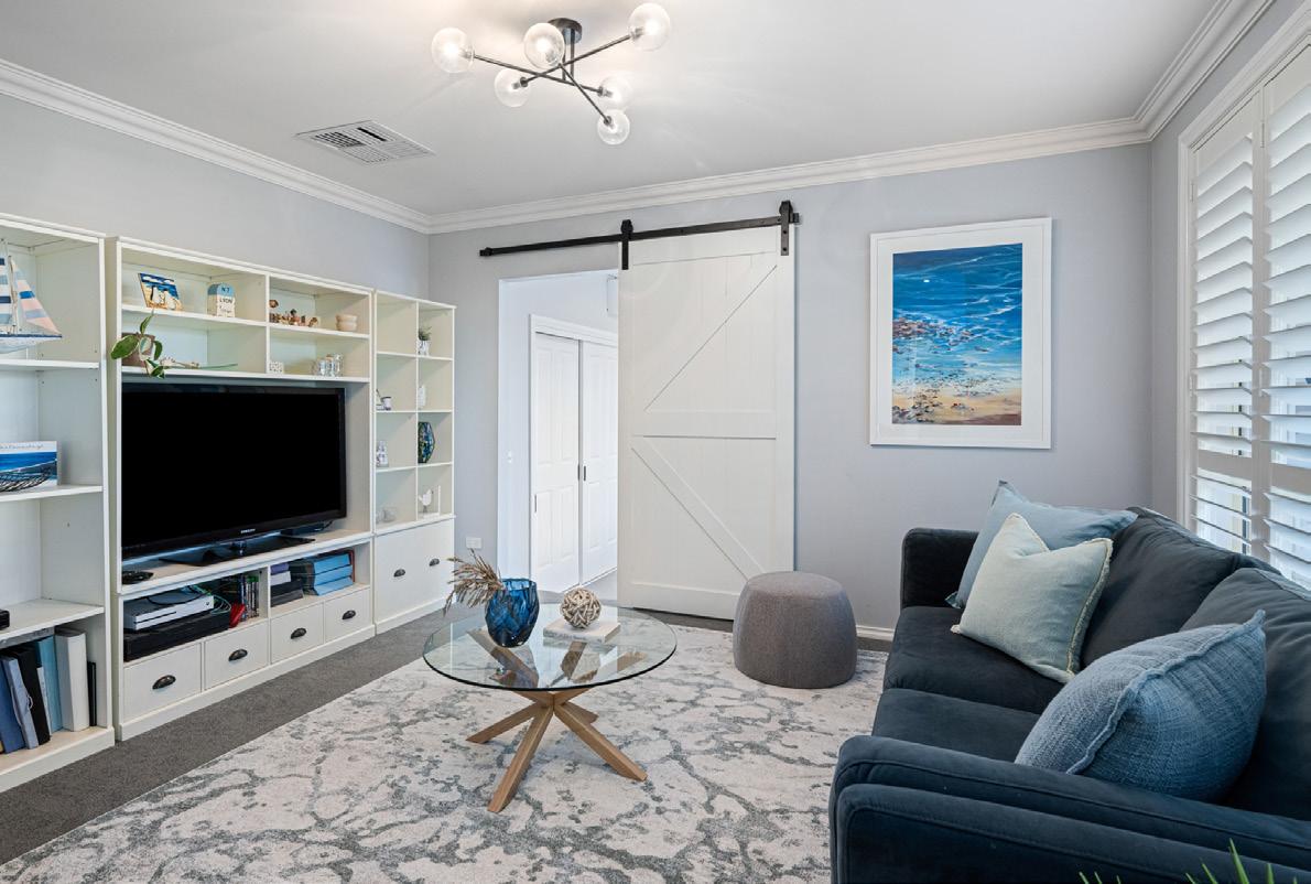 Designed with family living in mind, the home boasts three distinct living zones, offering ample space for relaxation, entertainment, and family activities. The seamless indoor/outdoor flow is highlighted by a sun-soaked alfresco area, perfect for hosting gatherings or enjoying peaceful outdoor moments in a private setting.