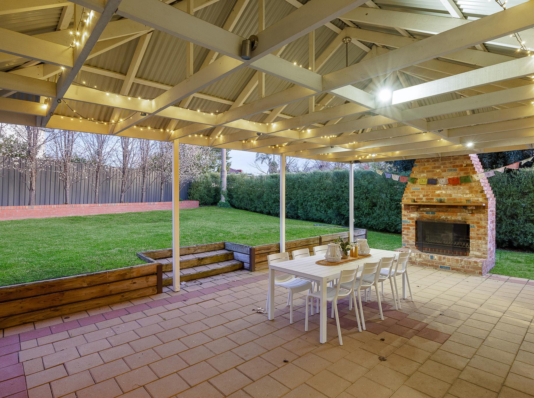 Outdoor living is a true highlight, with a charming front verandah and timber deck perfect for morning coffee, and a spacious allweather entertaining area complete with a striking brick fireplace—ideal for cozy evenings with friends.