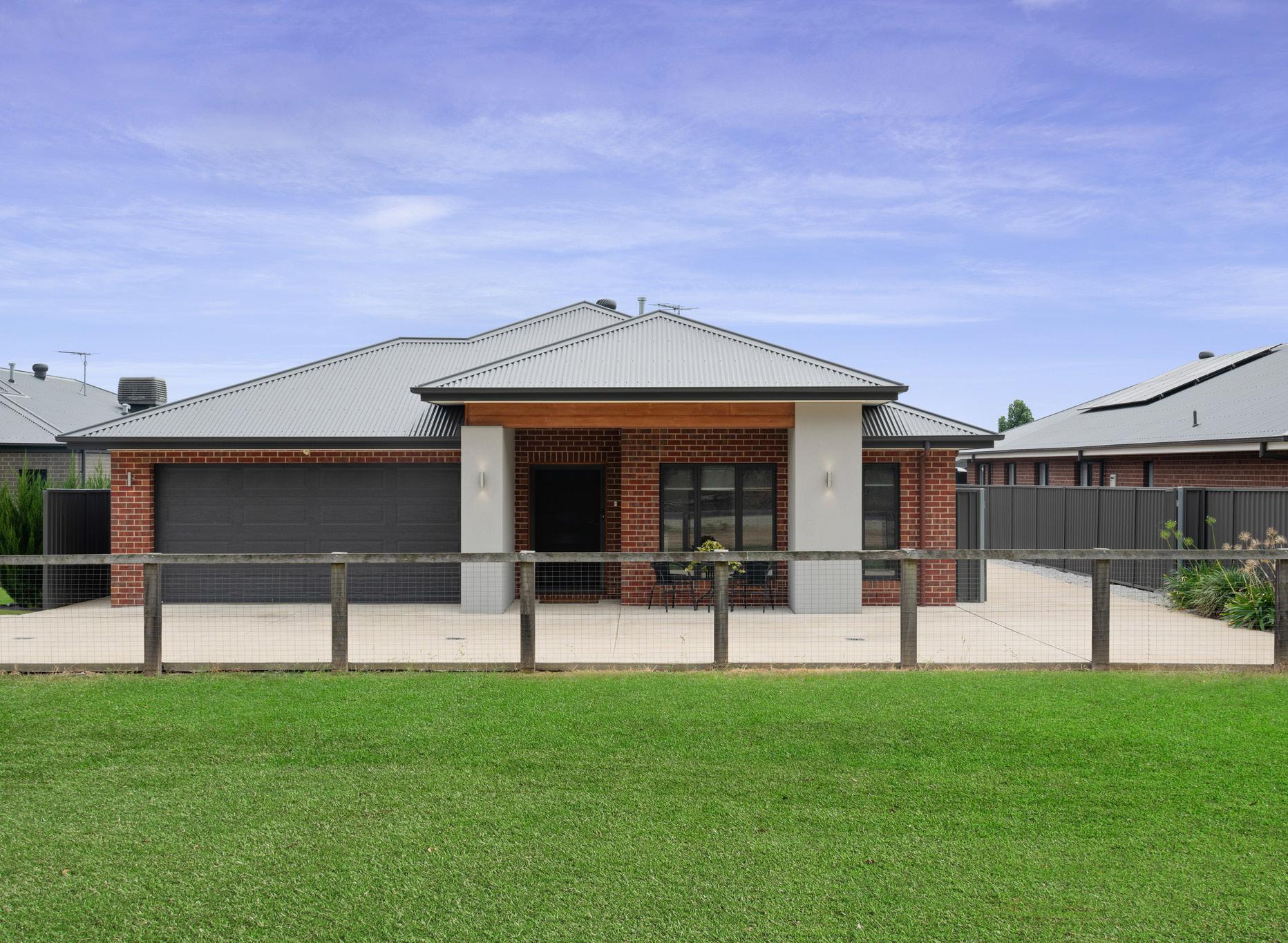 Discover the perfect place to call home in this stunning modern residence, where contemporary comfort meets effortless family living. Tucked away in a peaceful pocket of Wirlinga, this immaculately presented home enjoys a prime location just minutes from Thurgoona’s most sought-after amenities. From the renowned Thurgoona Golf Course to Thurgoona Plaza, Coles, and a choice of quality schools, everything you need is right at your doorstep. At the heart of the home, expansive open-plan living, dining and kitchen spaces have been thoughtfully designed for everyday ease and entertaining alike. The kitchen is a standout, showcasing stone benchtops, SMEG appliances, a walk-in butler’s pantry, sleek 2-Pak cabinetry and a generous island bench with waterfall ends. Flowing seamlessly from here, the living and dining zones are finished with sheer curtains and plantation shutters, opened via glass sliding doors to the covered alfresco. A versatile theatre room offers a perfect second living space, complete with its own split system, ideal for movie nights, entertaining or quiet retreat. Positioned at the front of the home, the master suite is both private and spacious, featuring a walk-in robe and a beautifully finished ensuite with floor-to-ceiling tiling, double vanity, walkin shower and toilet. To the rear, three additional bedrooms, each with walk-in robes, are thoughtfully zoned for family living or guests, serviced by a stylish central bathroom and separate toilet. A dedicated study provides an ideal work-from-home or study space, while the mudroom and well-appointed laundry add everyday practicality.Outside, the undercover alfresco is designed for year-round enjoyment, complete with outdoor blinds and ceiling fan. Car and storage options are exceptional, with a double garage offering internal access and side access to an impressive 6m x 9m (approx.) shed featuring three roller doors, toilet and wood heater, an outstanding space for hobbies, storage or entertaining. Completing the package are polished porcelain tiles throughout, double-glazed windows and doors, zoned ducted heating and cooling, TV points to all bedrooms and a 4,500-litre rainwater tank. This exceptional home is a rare opportunity in a prime location, offering the perfect combination of quality, comfort, and convenience