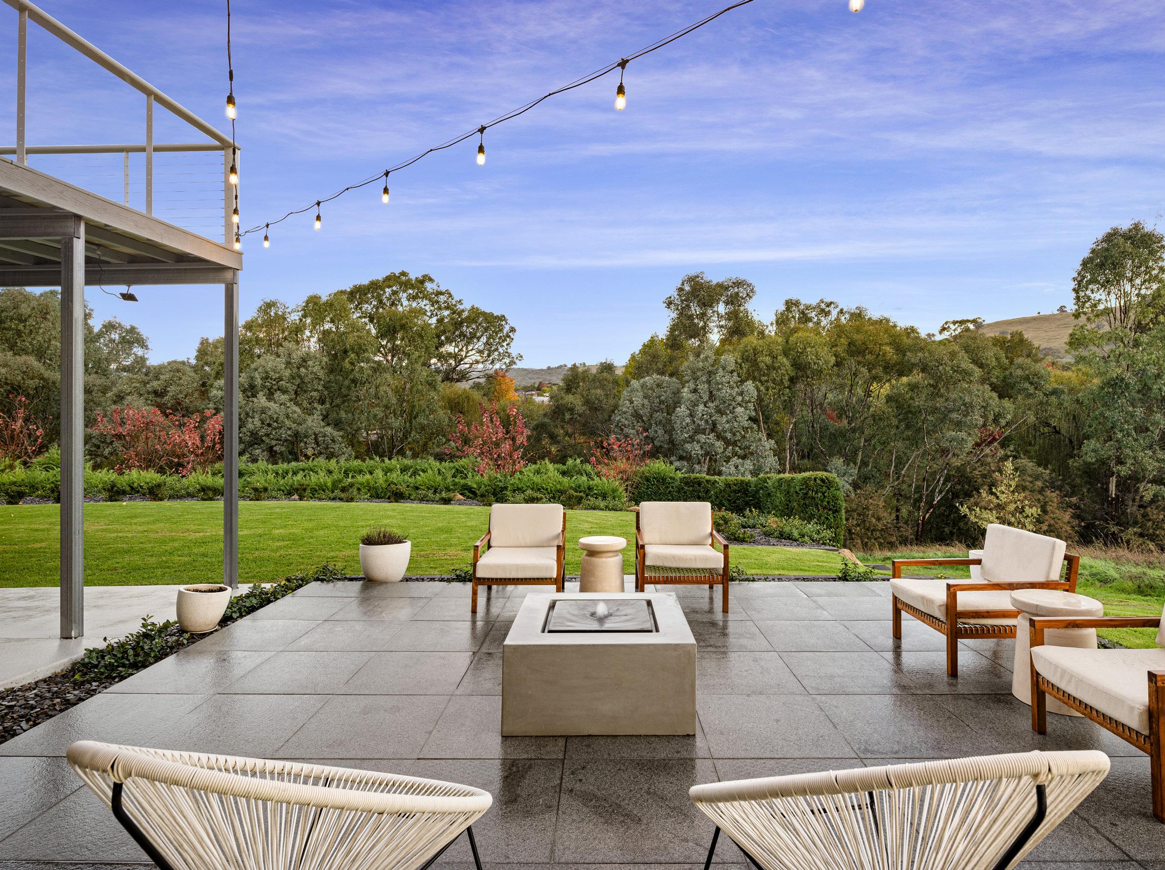 The vast entertainer’s kitchen boasts immense stone benchtops, gas cooktop and quality appliances. Ample storage includes a walk – in pantry, and soft close cabinetry cupboards provide practicality. Accommodation comprises four spacious bedrooms with large windows and built in robes. Landscaping cleverly creates a picture-perfect view from each bedroom. An immaculate and spacious central bathroom comfortably services the bedrooms. The luxe master suite takes in the views and features a walk-in wardrobe and high spec ensuite with double vanity providing a tranquil oasis for parents. Additional family areas include a formal lounge and separate study or play space for the children. Entertaining options are abundant as you head outside. Be calmed by the serene setting provided by a central water feature or discover nestled amongst established trees and hedges a dedicated fire pit area. The surprises do not stop there. Be delighted by additional living zones downstairs. Serving as a home gym, teenage retreat or large additional office space with powder room, the possibilities are endless. In addition to this, a modernday speakeasy or whiskey bar is sure to impress. An ornate heater warms this dimly lit space creating a unique and private adult retreat.