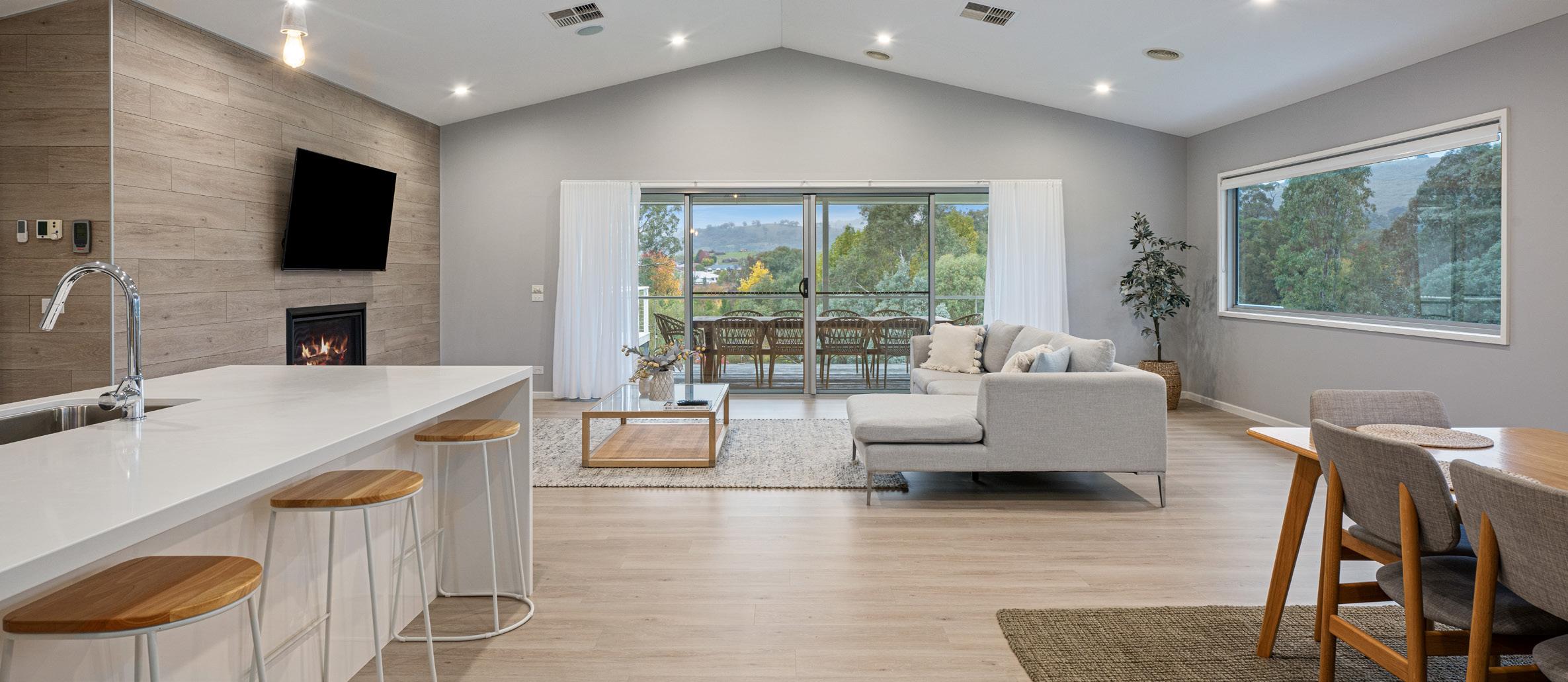 Elevated and gently undulating, 58 Clarendon Avenue enjoys fantastic views over Wodonga, Huon Creek and the mountains beyond. Located in a quiet position, the home has been cleverly designed to take advantage of the sloped block, providing separate living, and entertaining zones ideal for the growing family. This beautifully finished Trentwood Home has been architecturally designed to feature light filled rooms, raked ceilings, square set cornices, and abundant space in all rooms, providing a real sense of space and opulence. This home includes a vast number of upgrades, including internal feature walls, double glazed windows, and timber floating floor, and large picture frame windows.