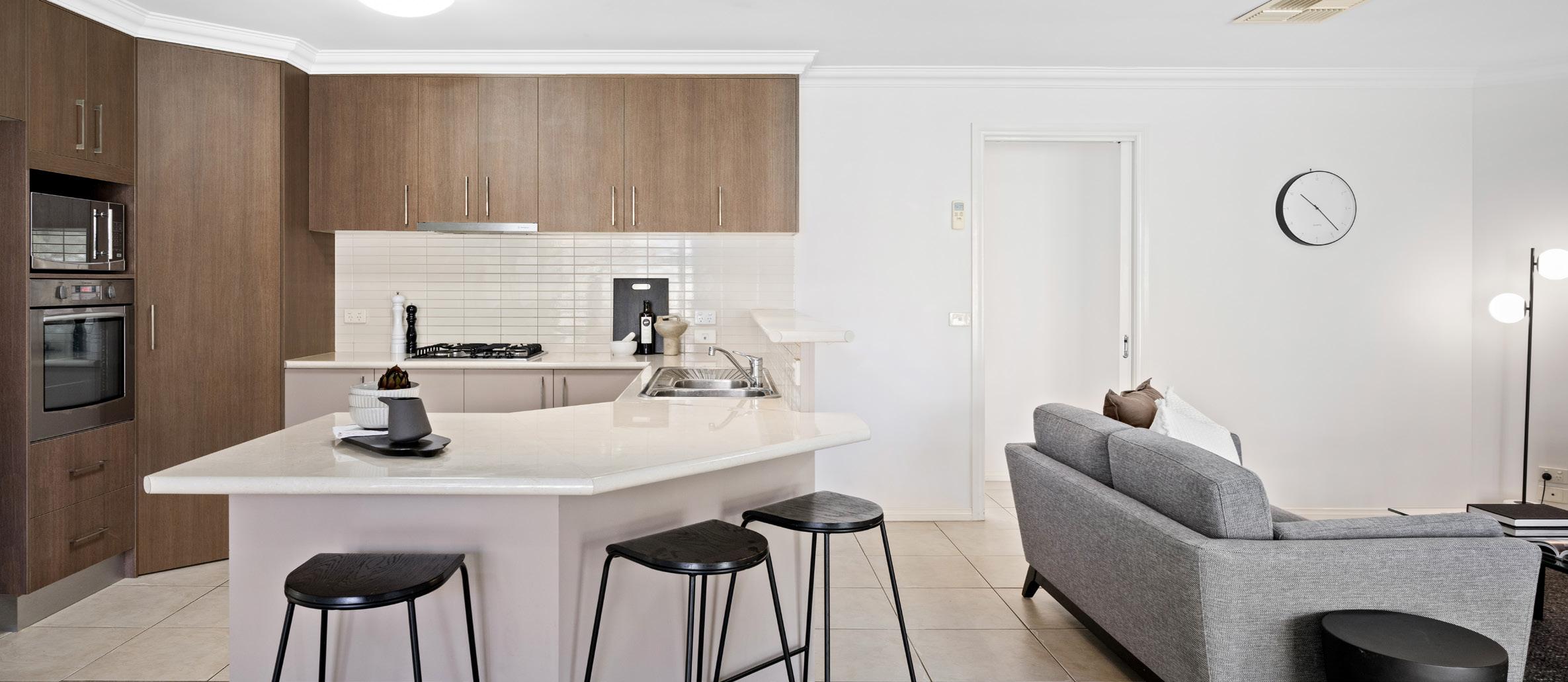Inside, the formal lounge serves as a parent’s retreat whilst the open plan kitchen acts as the communal gathering space. The light filled kitchen is fitted with premium quality stainless steel appliances and offers a walk-in pantry. The dining and living areas flow beautifully to the undercover outdoor alfresco area, a perfect place to sit and overlook the superb low maintenance gardens with plenty of room for children or pets to play.