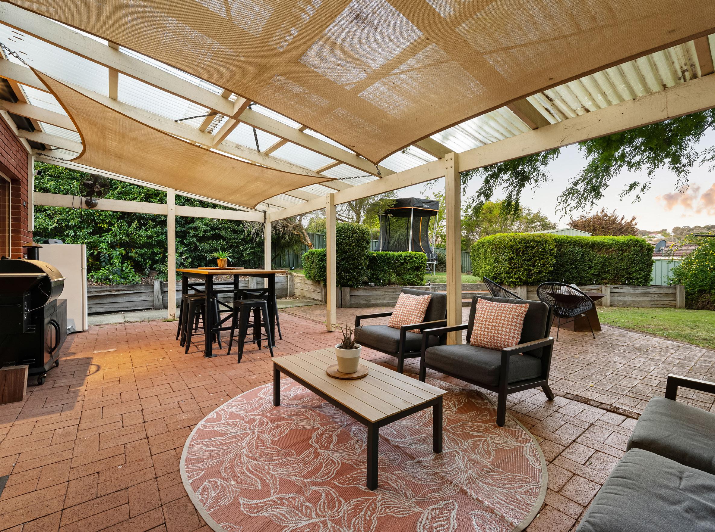 Step outside from the kitchen to an undercover alfresco area, perfect for year-round entertaining. This beautiful space overlooks a landscaped garden, ideal for relaxing in a tranquil setting while the children play under the lush green tree.