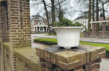 Replica’s van monumentale bloembakken aan de brug van de Regentesselaan.