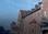 Rookwolken dwarrelen grijs en roze neer op het water.
