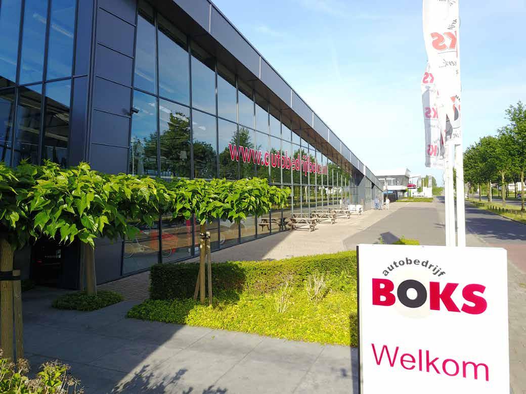 Duurzame relatie Wat is de relatie met Autobedrijf Boks en hoe kwam die tot stand? “Dat is al even geleden. De relatie met Gerrit en zijn medewerkers loopt al sinds de bouw van het pand van Boks aan de Tweelingenlaan eind jaren ‘90. Wij zaten des tijds op hetzelfde indu strieterrein, dis dat was lekker dichtbij. We heb ben kennisgemaakt en zijn eigenlijk met meer dere ondernemingen nooit meer weggeweest bij Autobedrijf Boks. Ze leveren aan ons zowel nieuwe als gebruikte auto’s. Bij ons rijden er En niet geheel onbelang rijk, ook het onderhoud is gewaarborgd bij Rutger en zijn crew.”