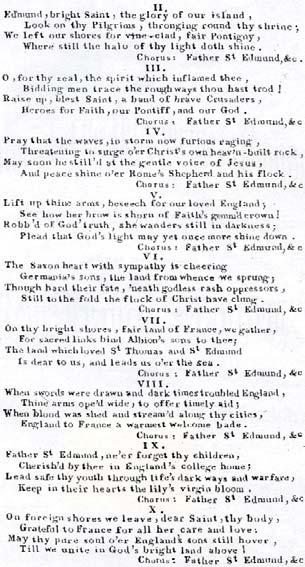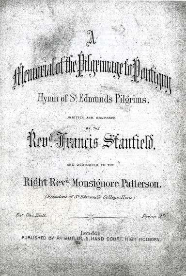 The Edmundian hymn Sing England’s Sons was written for the occasion of the national pilgrimage to the Shrine of St Edmund at Pontigny in northern France in 1874. The event was attended by a party of 350 from the College, who travelled by train and steam ship to get there. The composer was Fr Francis Stanfield (OE 1851-60).