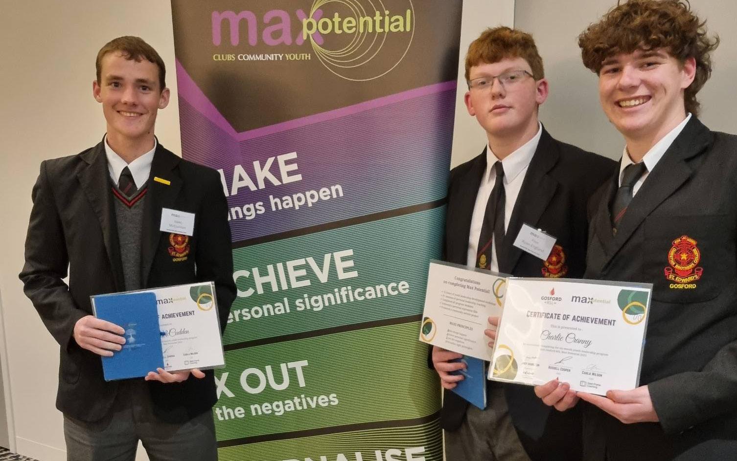 Year 11 Students Embraced the Max Potential Program: We were proud to announce that three of our Year 11 students - Charlie Cranny, Isaac McCudden, and Finn Ryan-Englund were selected to participate in the prestigious Max Potential Program, an initiative of Clubs NSW.