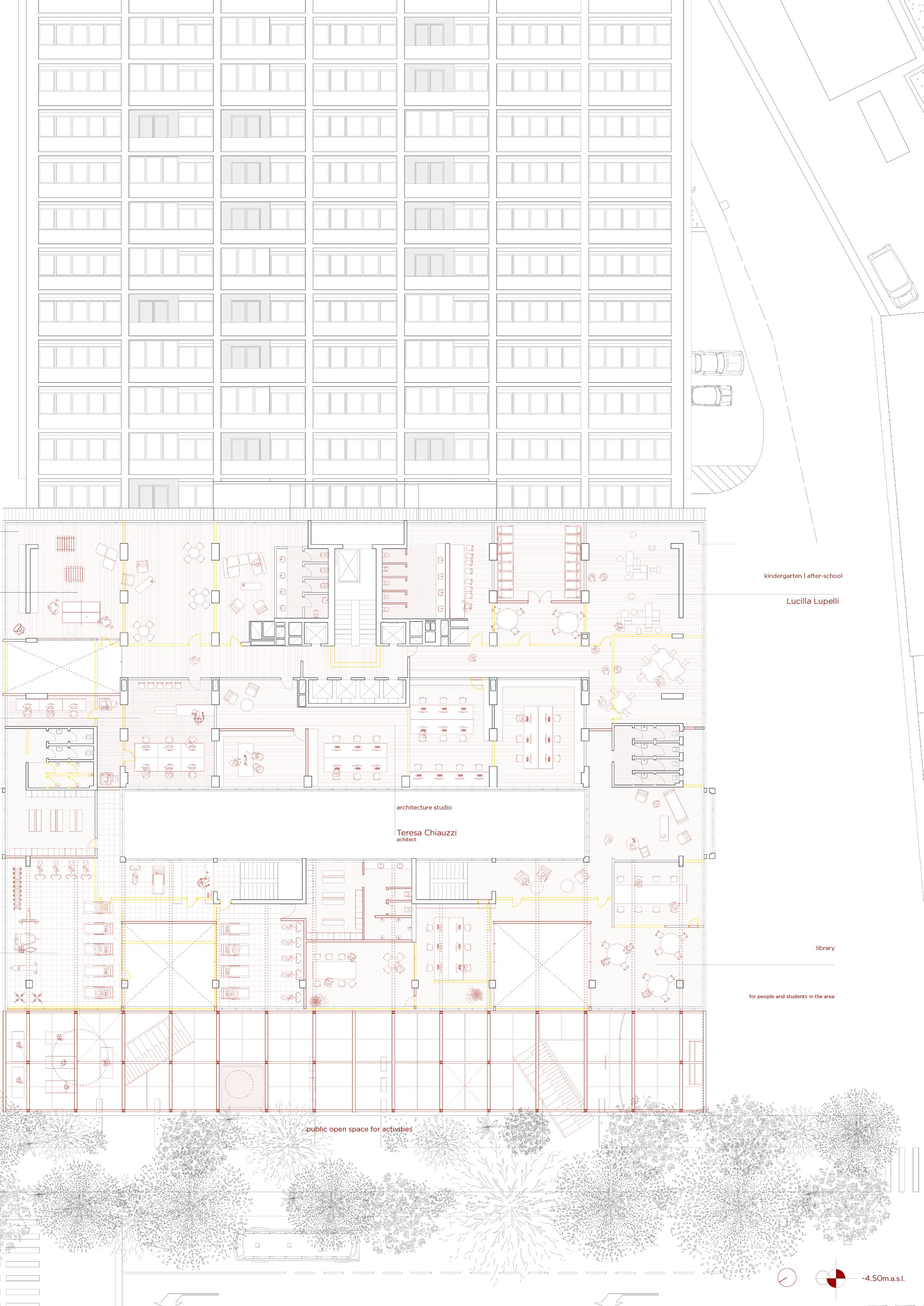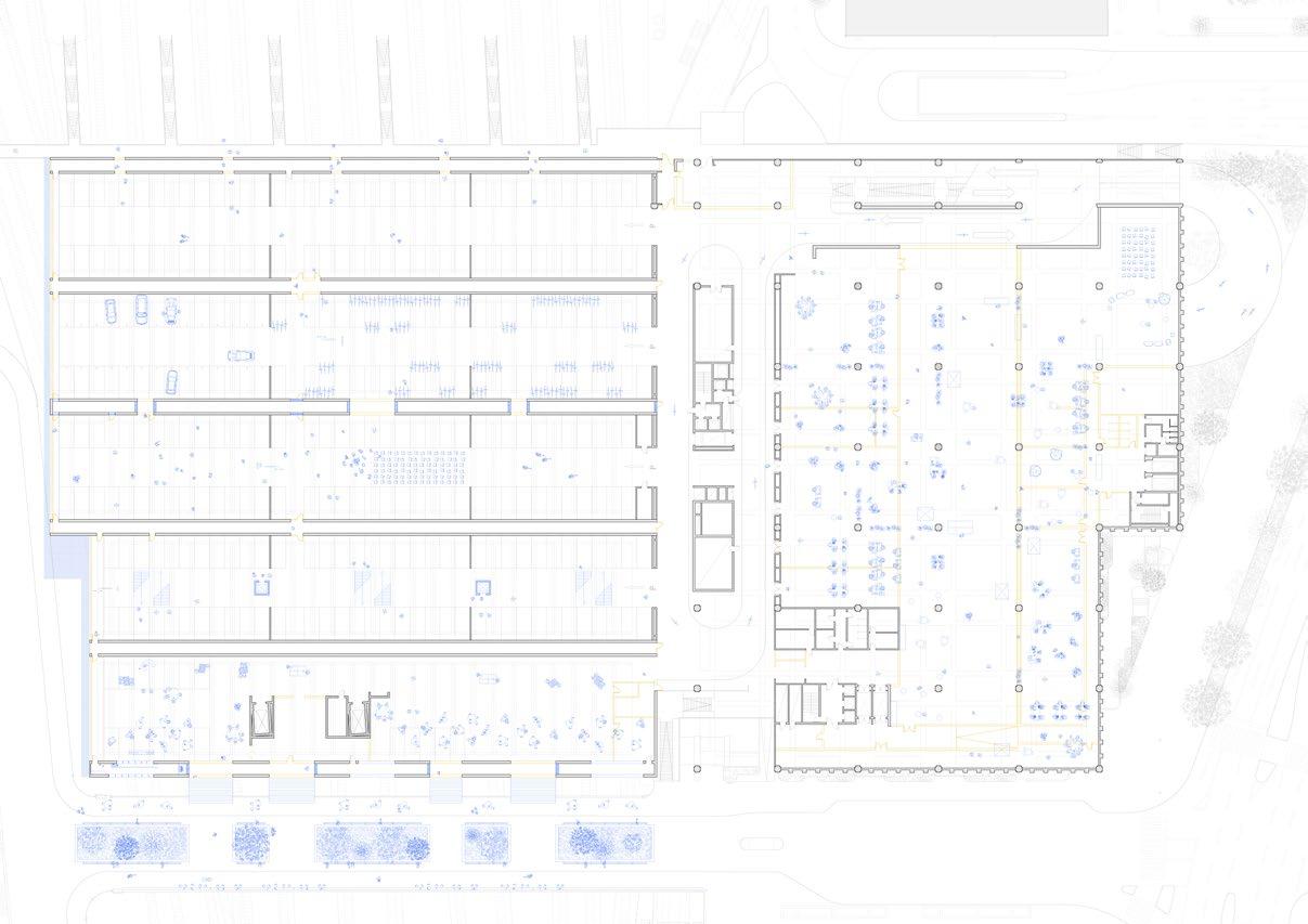 05_first floor parking, office spaces, connections, free spaces, public spaces