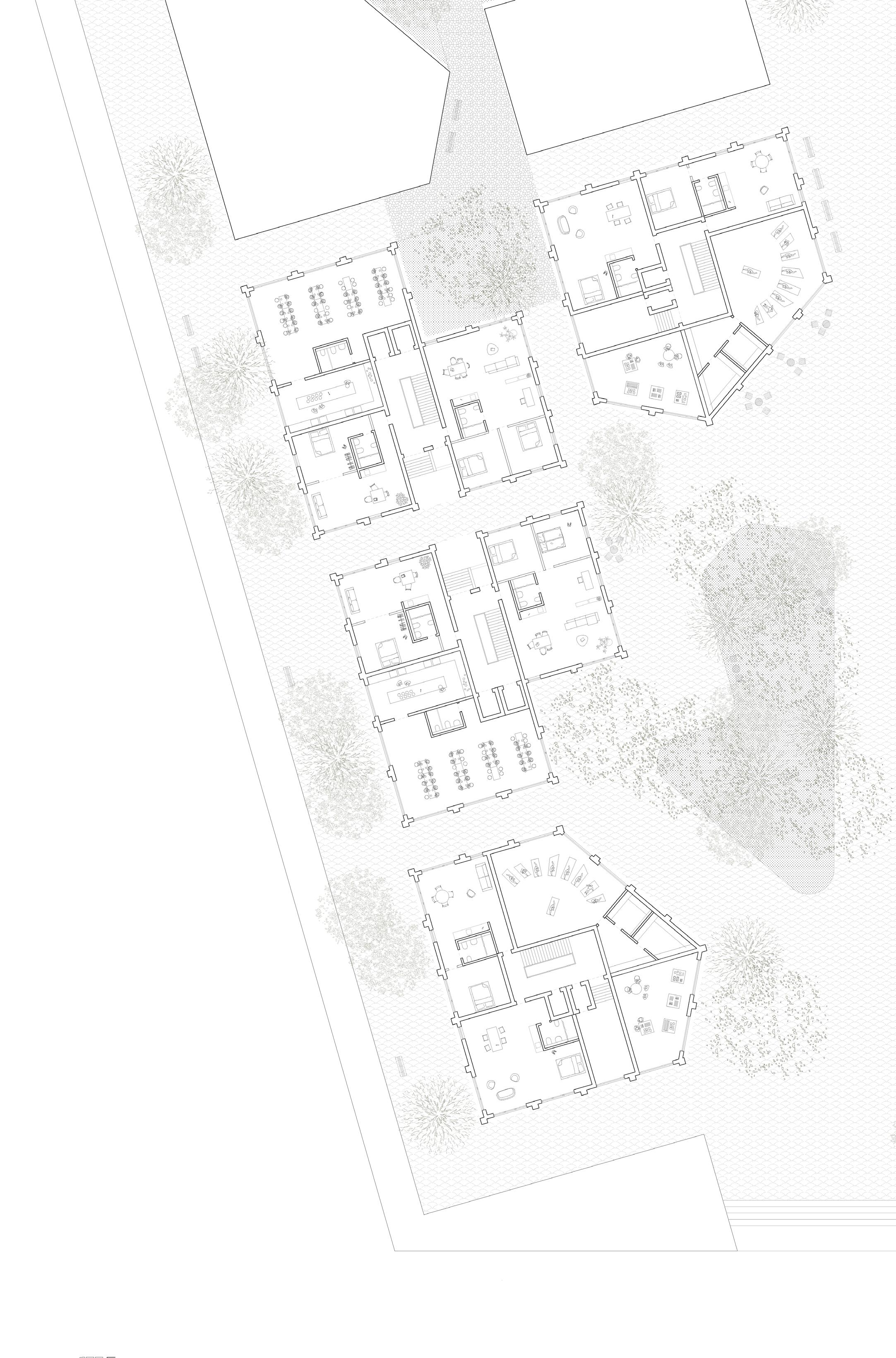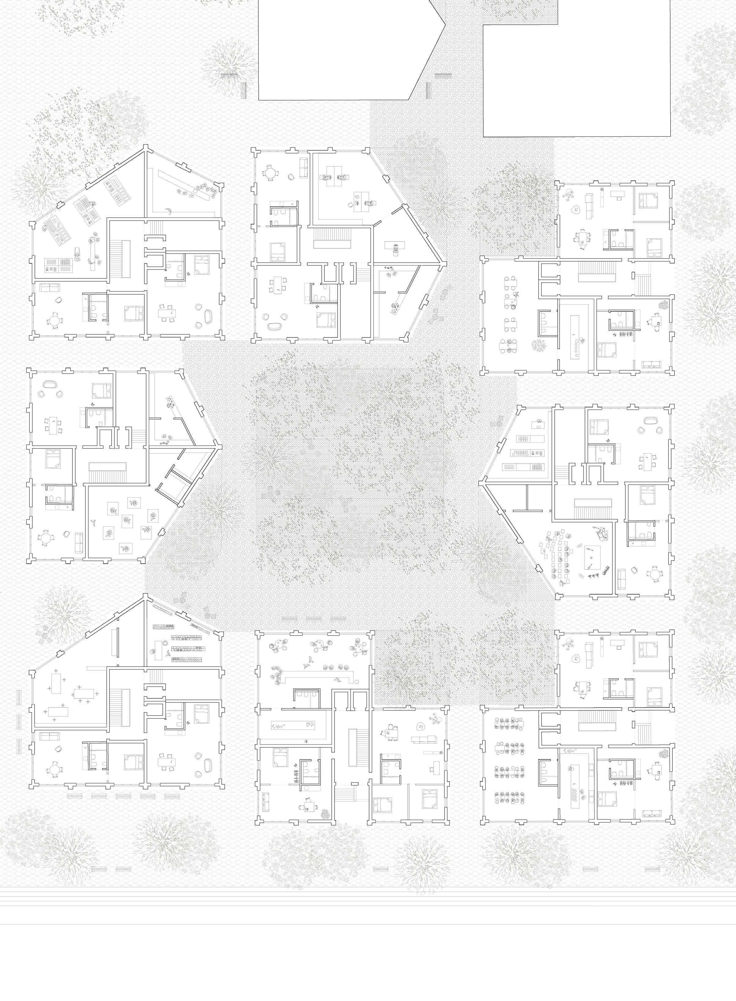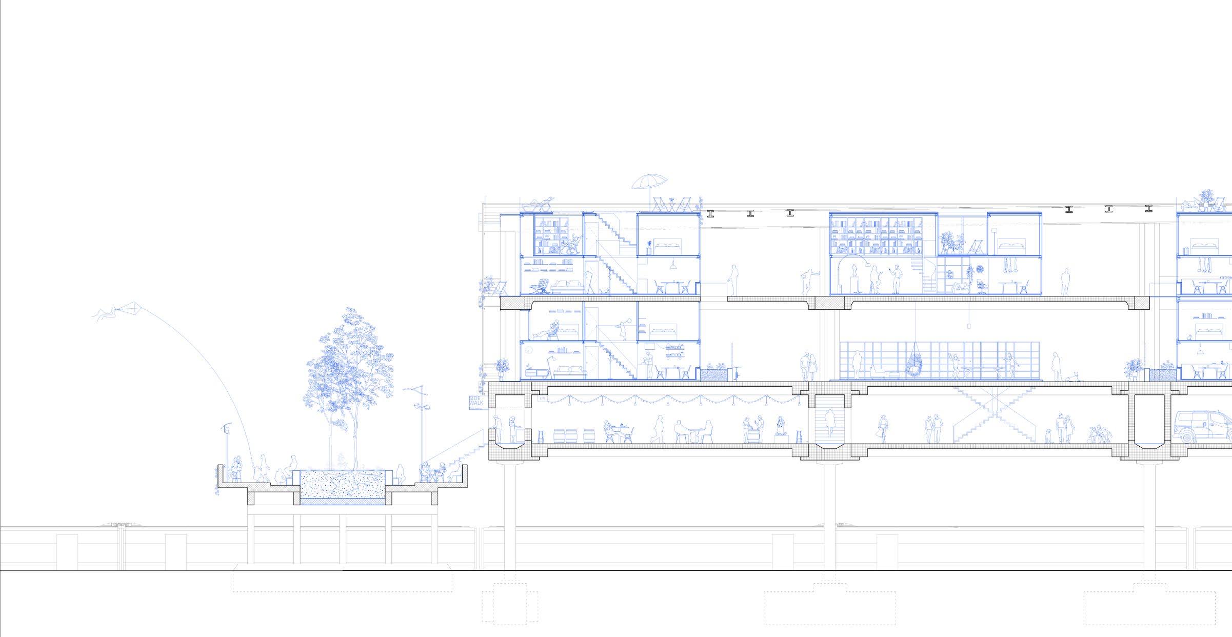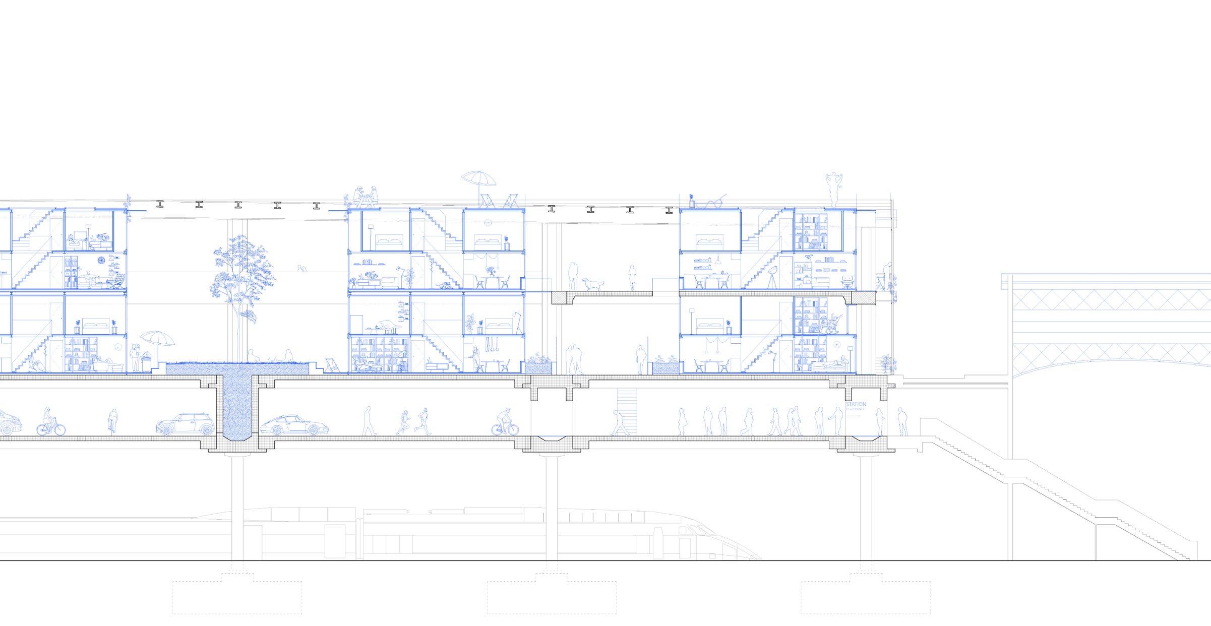 06_second floor platform housing, public spaces, sport area, connections