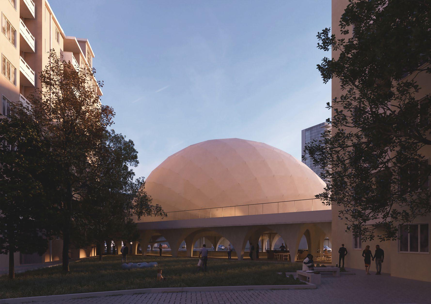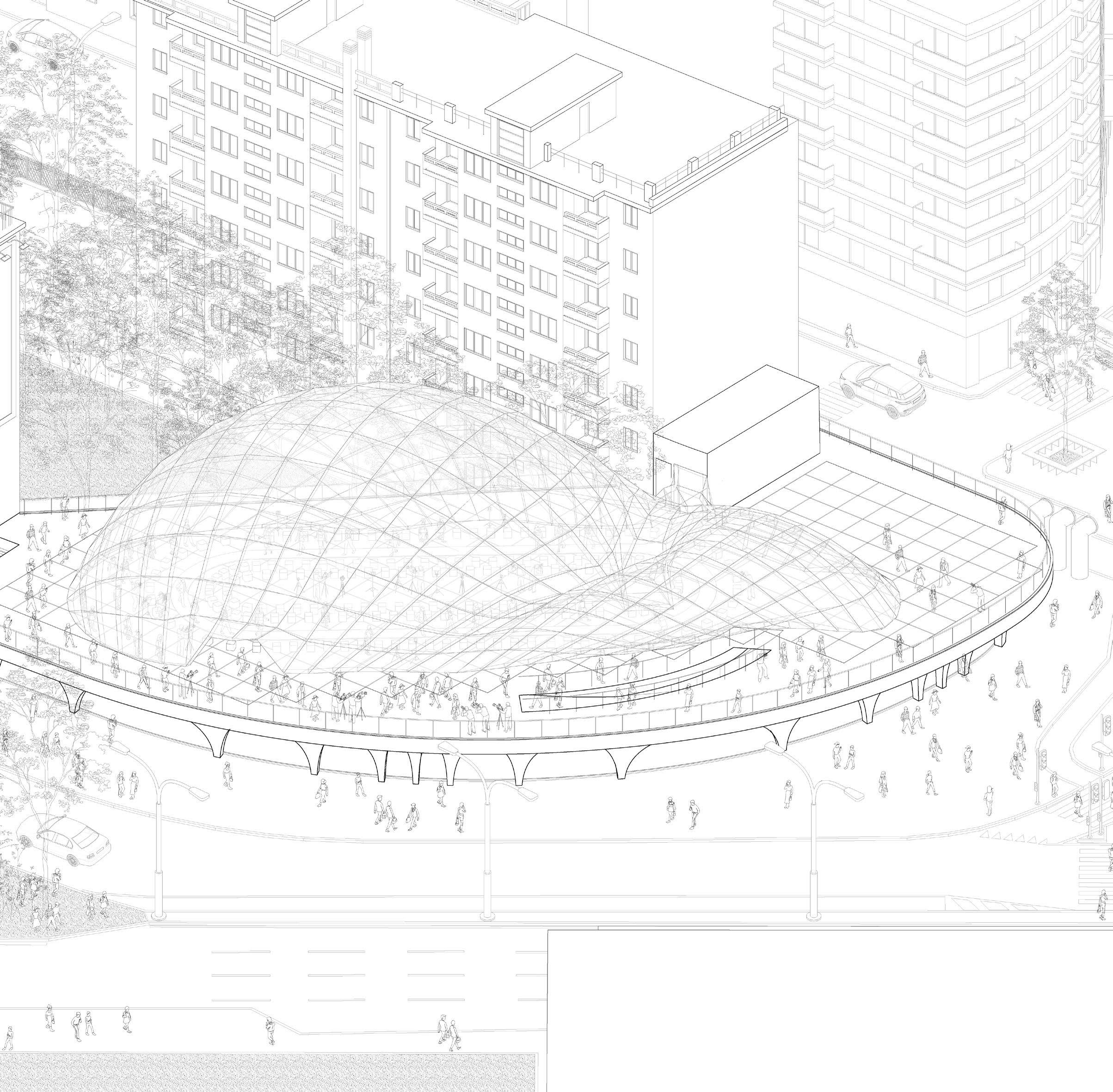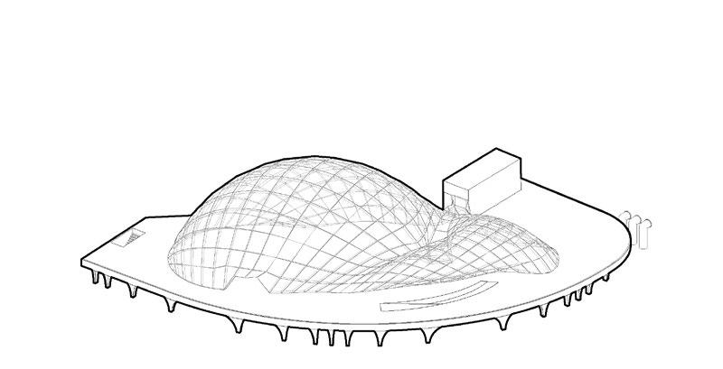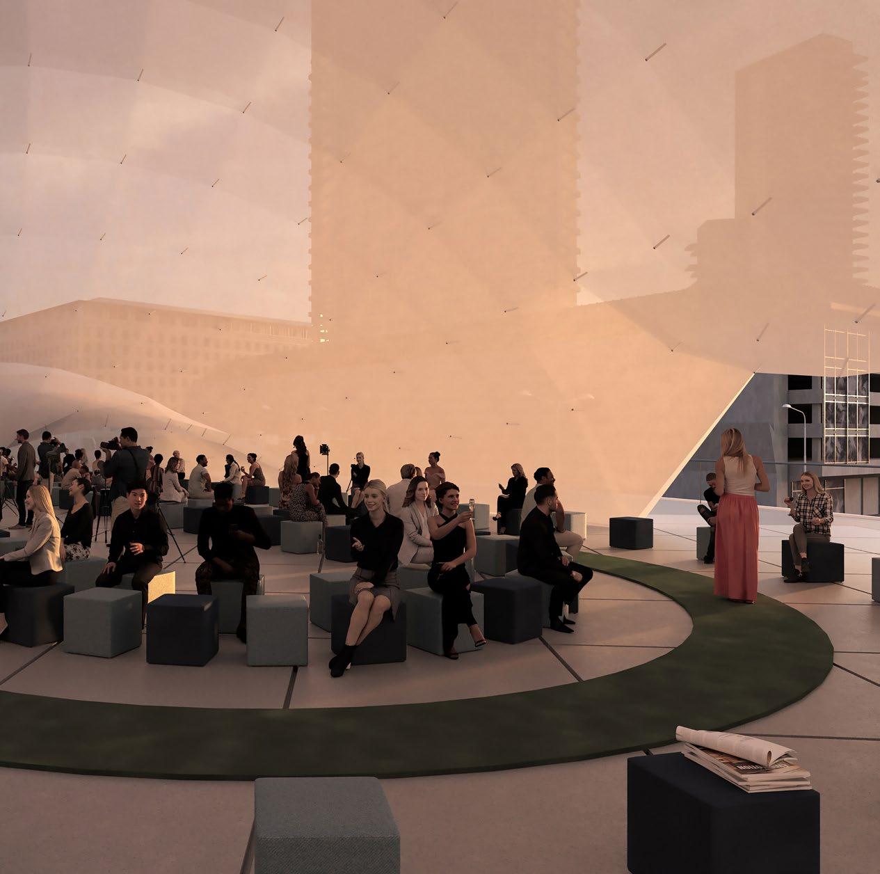 To compete against ready made set designs that can easily be placed inside a box, a pneumatic structure has been studied to achieve such level of demands for a fashion world that is constantly moving and changing. There are no fixed characteristics, everything is changing in a constant “Divenire” being ready for any necessities. All this while being on a concrete pedestal over Porta Nuova park ( the BAM) which can, at the same time, used for many opportunities welcoming the visitors as an open architecture.
