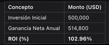 El retorno de la inversión se recuperaráenmenosdeunaño. lo que confirma la rentabilidad delproyecto.