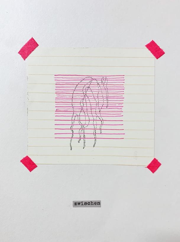 „Zwischen“, Pencil, tape, typewriter text, 21x29,7cm