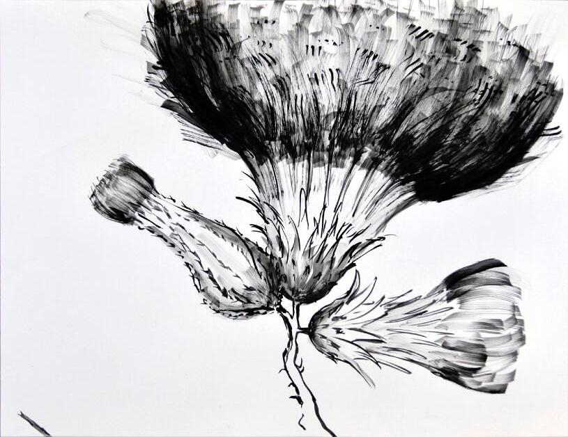 „Distel“, 2023, Tusche auf Papier, 65 cm x 50 cm