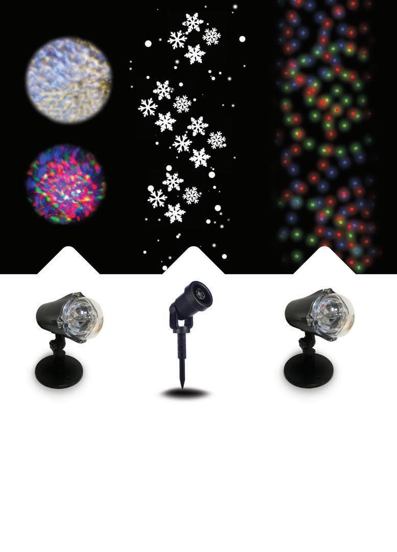Κατάλληλο: Για εξωτερικό χώρο IP44 Εμβέλεια: 30-50m Αισθητήρας φωτός €18.95 600-22304 | DEL.00782 Τύπος: Laser Σχέδια: Έγχρωμα Χριστουγεννιάτικα σχέδια Ισχύς: 4W Λειτουργία: Με ρεύμα Φωτισμός: LED Κατάλληλο: Για εξωτερικό χώρο IP44 www.stephanis.com.cy | 19 CHRISTMAS PROJECTORS