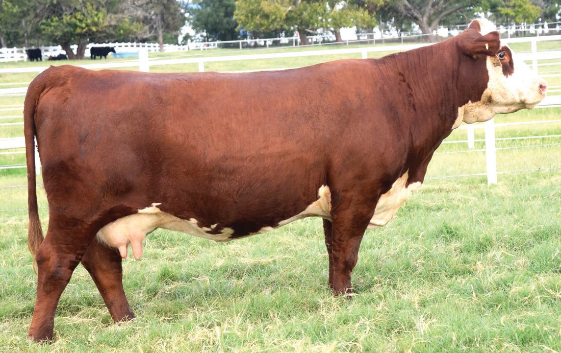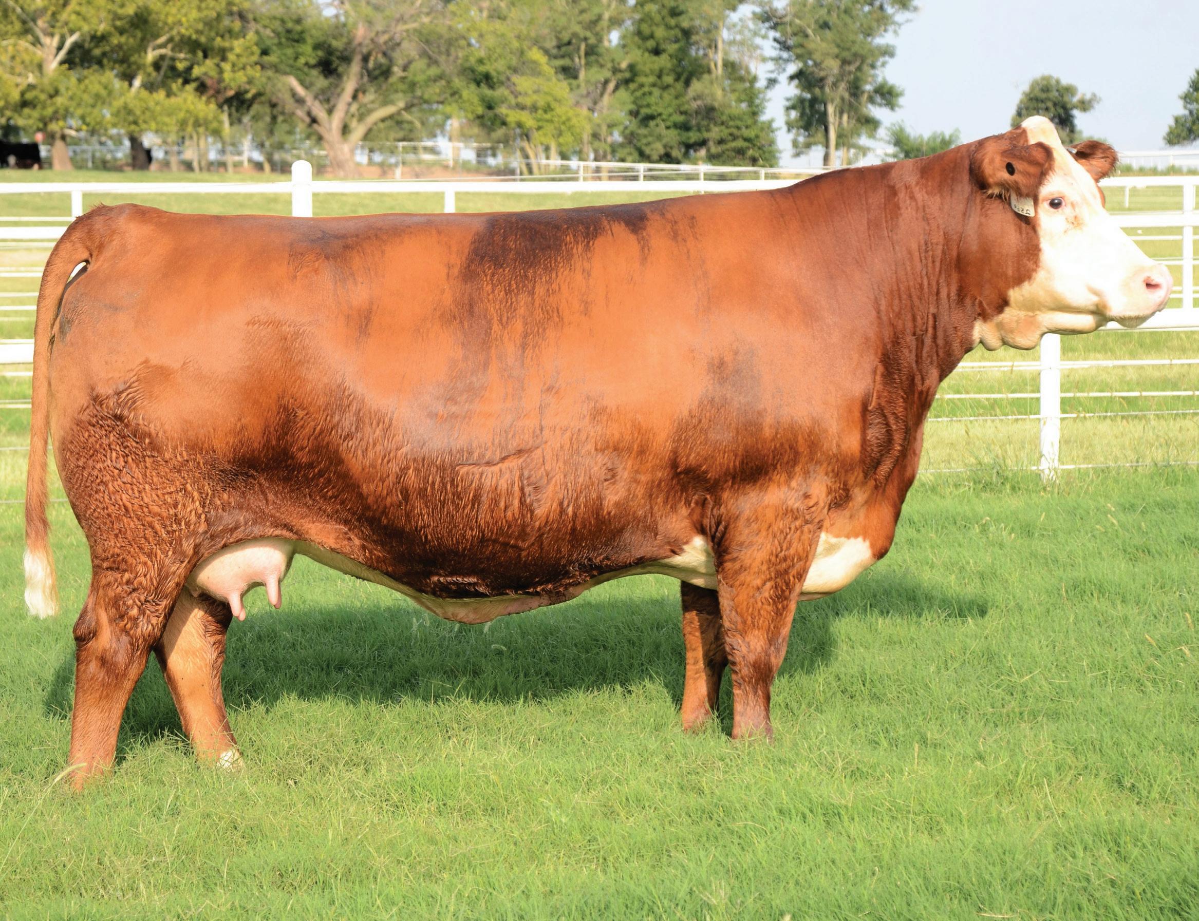 Dark red in color and fault-free in her design, 4216 is as well-balanced as any female in the offering and is equipped with all the extras to make her a sale-day feature. 4126 has the added look, body, hip and bone to be highly competitive in the show ring.