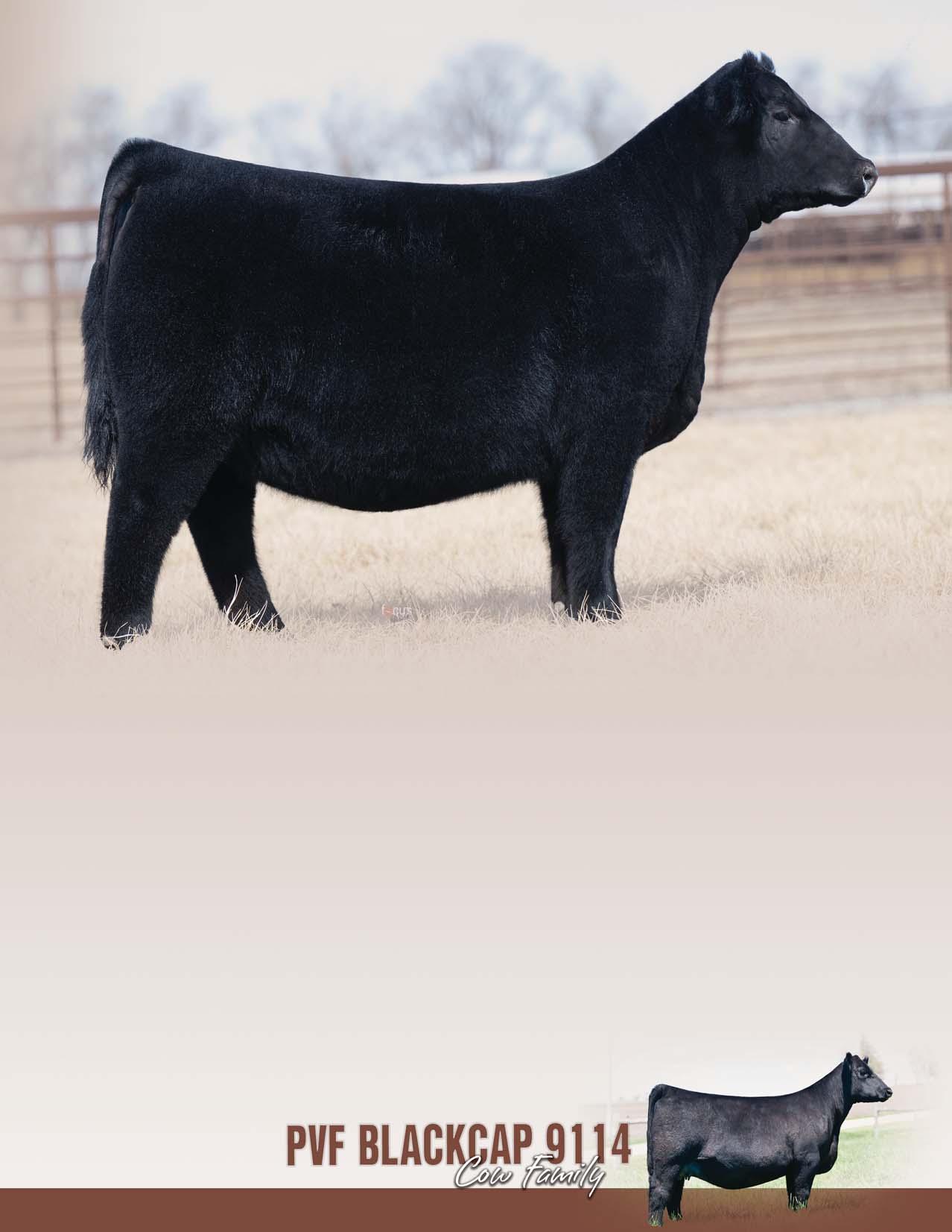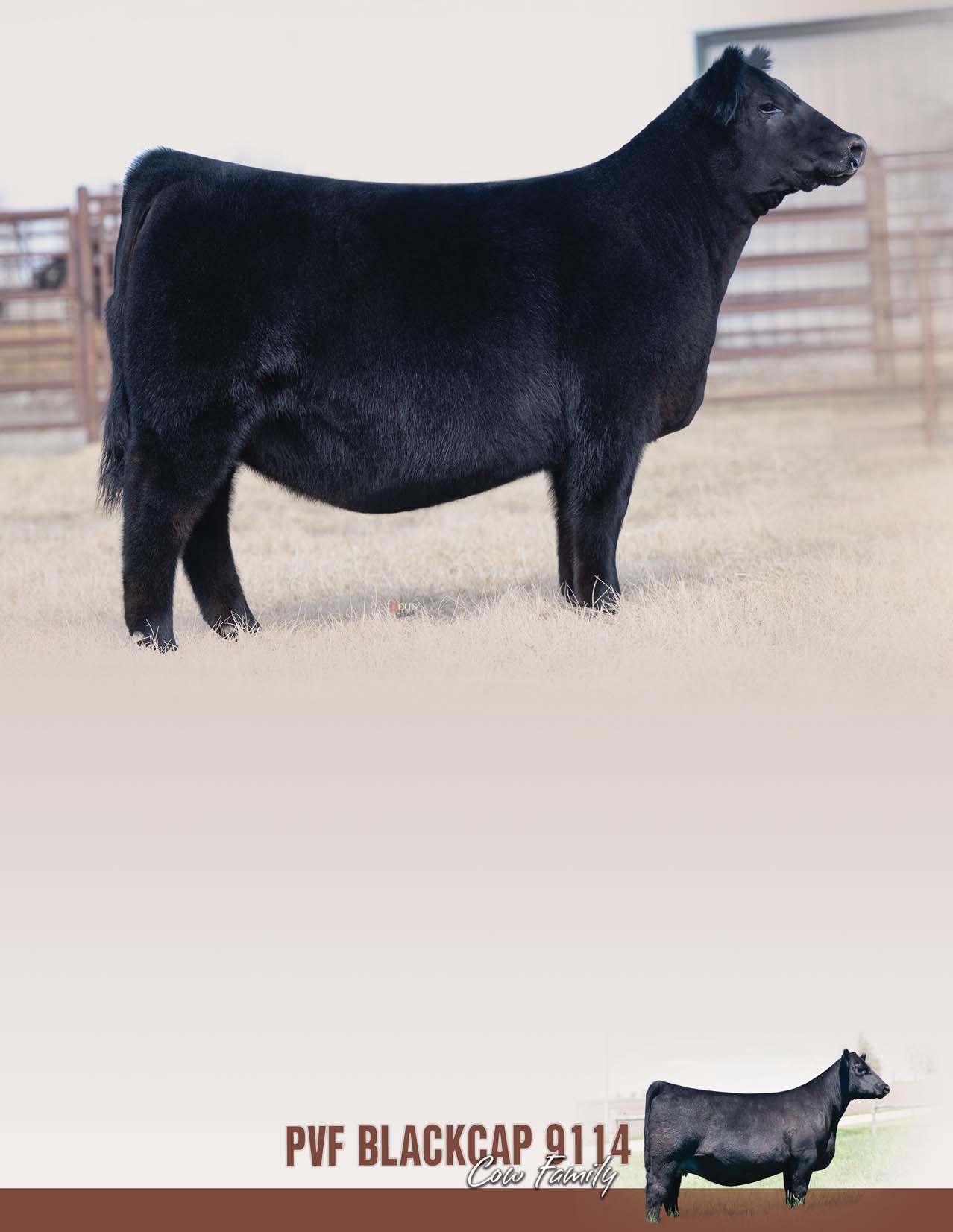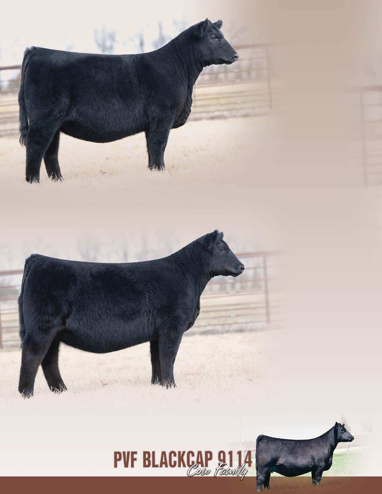 A late April female whose impressive look is backed by a genetic package sure to be a show ring contender and no-miss future producer. Capone’s first calf crop becomes more impressive with age, and as his second calf crop hits the ground, positive reports come in daily. PVF Blackcap 9114 is a daughter of PVF Inauguration 6174, who has stamped her progeny with everything we have hoped for and more.