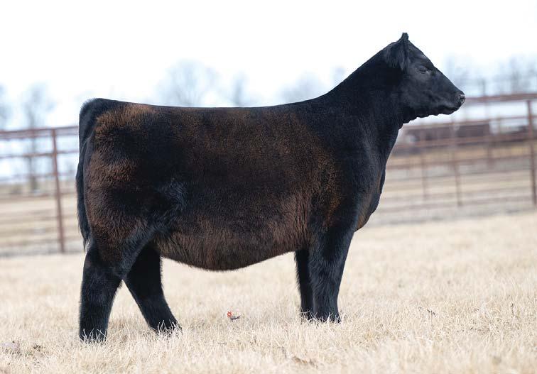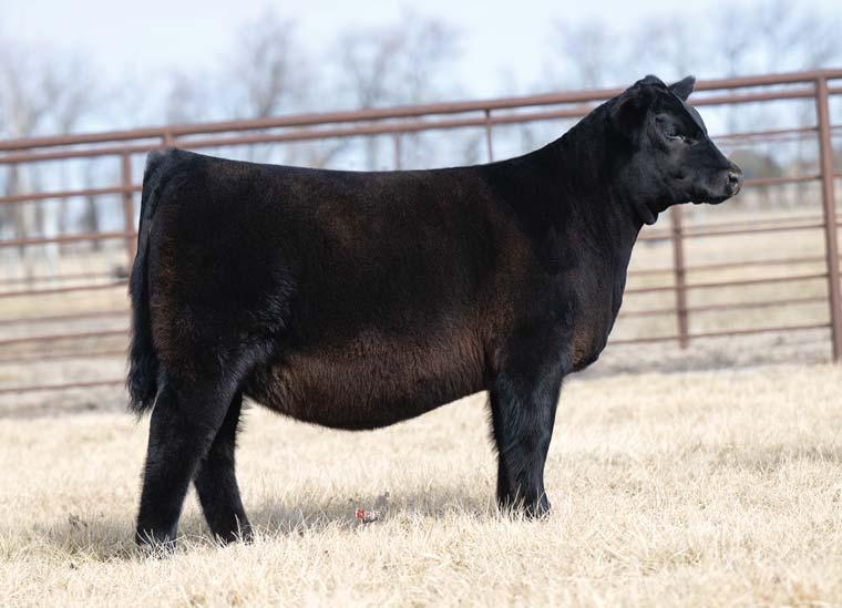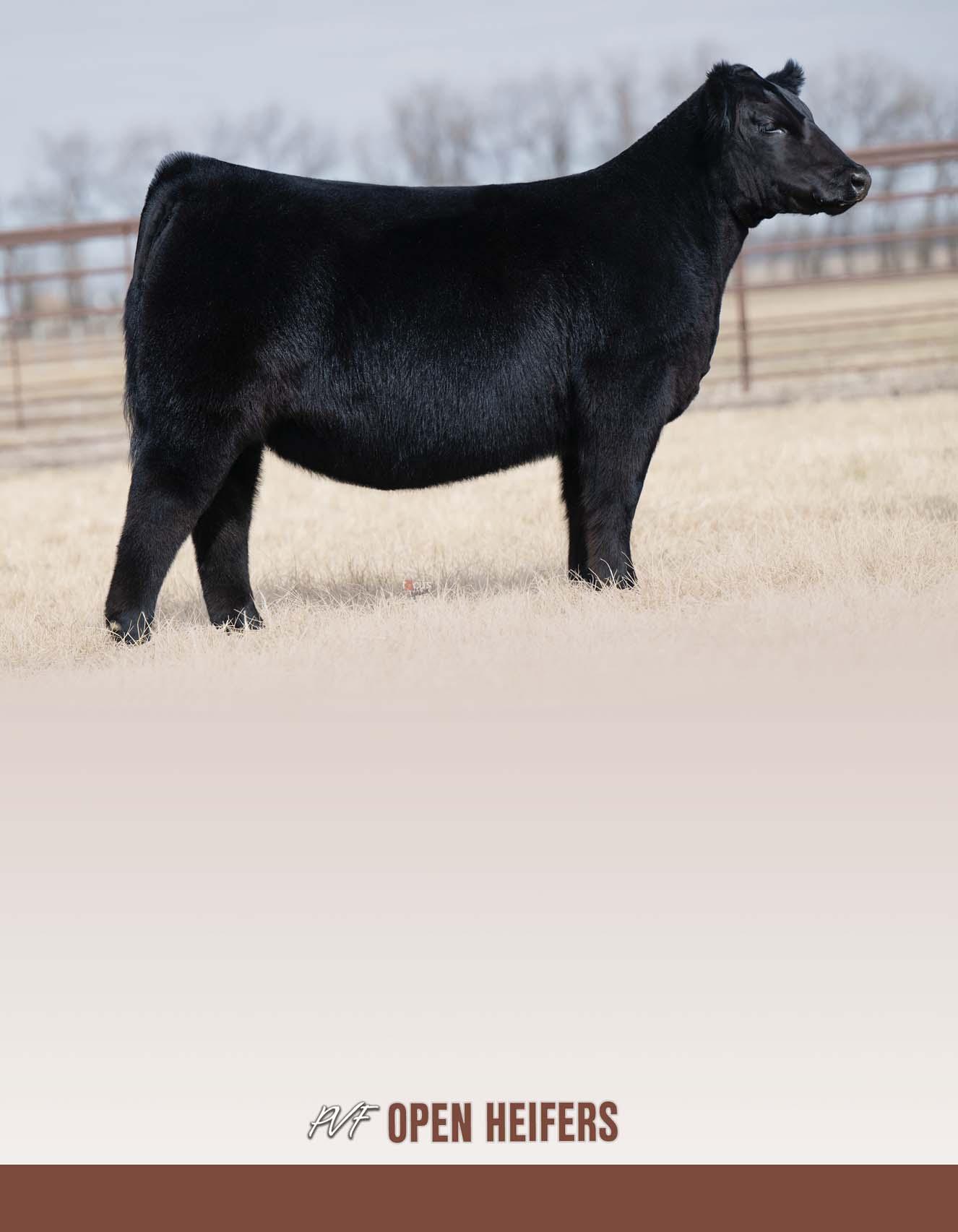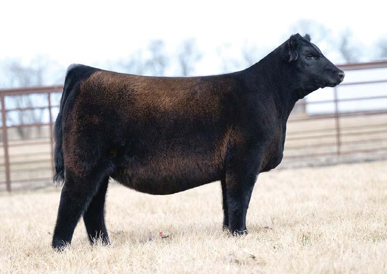Featuring a daughter of the ABS sire PVF DLX King Pin 0058, who is not only becoming famous in Angus rings but in other breed show rings as well. The bottom side of this female’s pedigree is equally as impressive, as her donor dam is a direct daughter of the legendary PVF Missie 0084 and a full sister to PVF Missie 5216, past National Junior Angus Show Grand Champion Female. This heifer is loaded with the power and style required to produce a successful show career and breeding record.