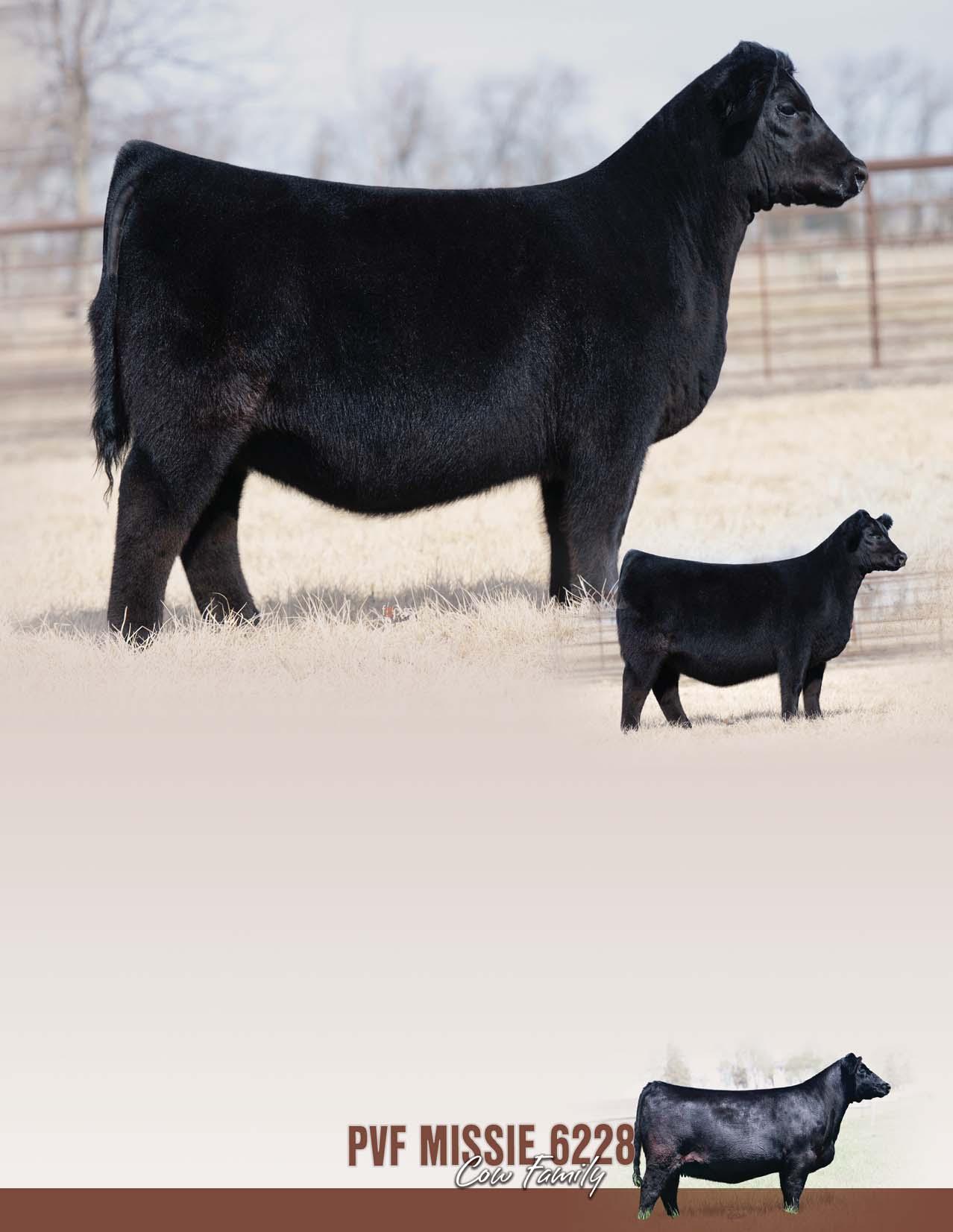 From the Missie cow family, the granddam of Lot 28 is a sister to the immortal PVF Insight 0129. The dam, PVF Missie 0122, was a past PVF sale feature, who went on to be a division champion at the National Junior Angus Show for Ashlyn Mool. A daughter of Casino produced by PVF Missie 6228, who has produced as many sale features and high sellers as any donor in program history. Her sire, Mahogany Prime, blends Style and First Class resulting in a pedigree that blends all the greatest show heifer producers in the Angus breed in the last 20 years.