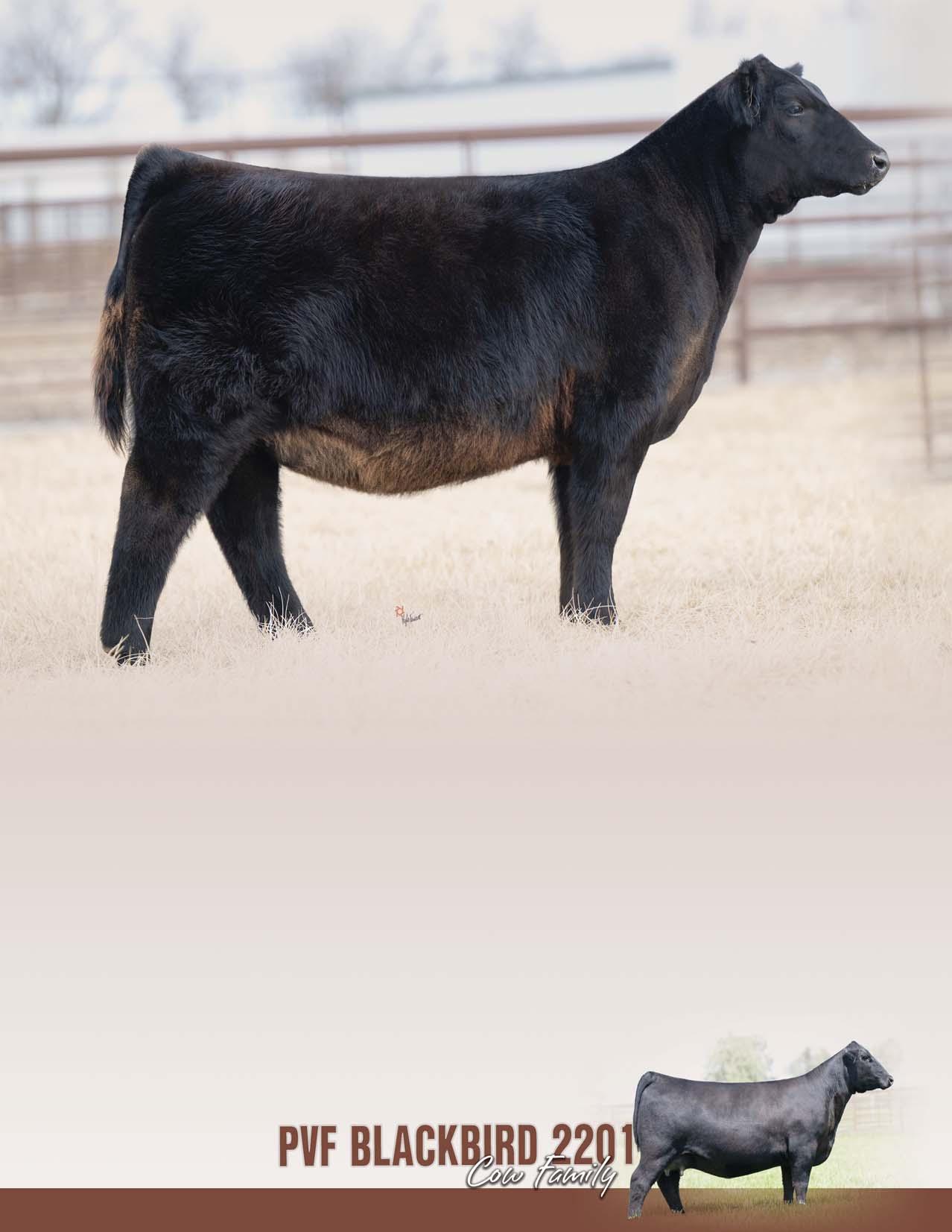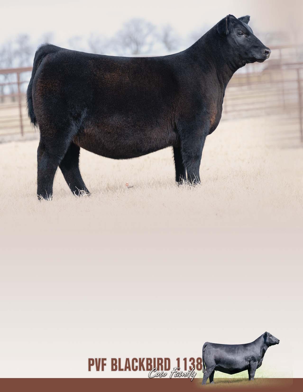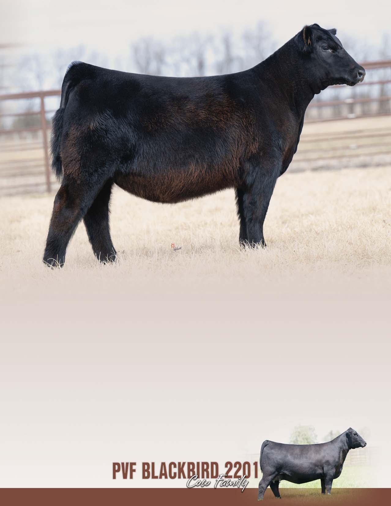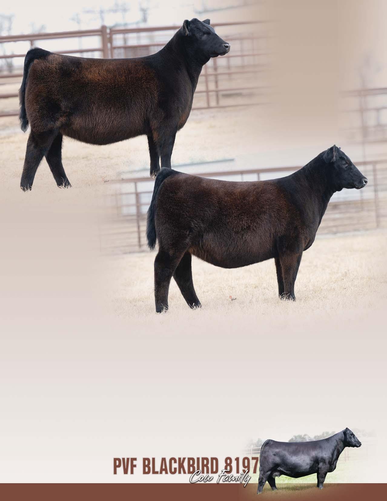Featuring the next generation of the Blackbird family. The dam of Lot 17, PVF Blackbird 1138 is a Money Earned daughter of the famous PVF Blackbird 3127, making her a maternal sister to PVF The Natural 7042, as well as PVF Blackbird 2201, one of the featured donors in this catalog. Lot 17 herself is a powerhouse female; impressive for her ability to combine true width and dimension throughout in a sound structured, show-ring look.