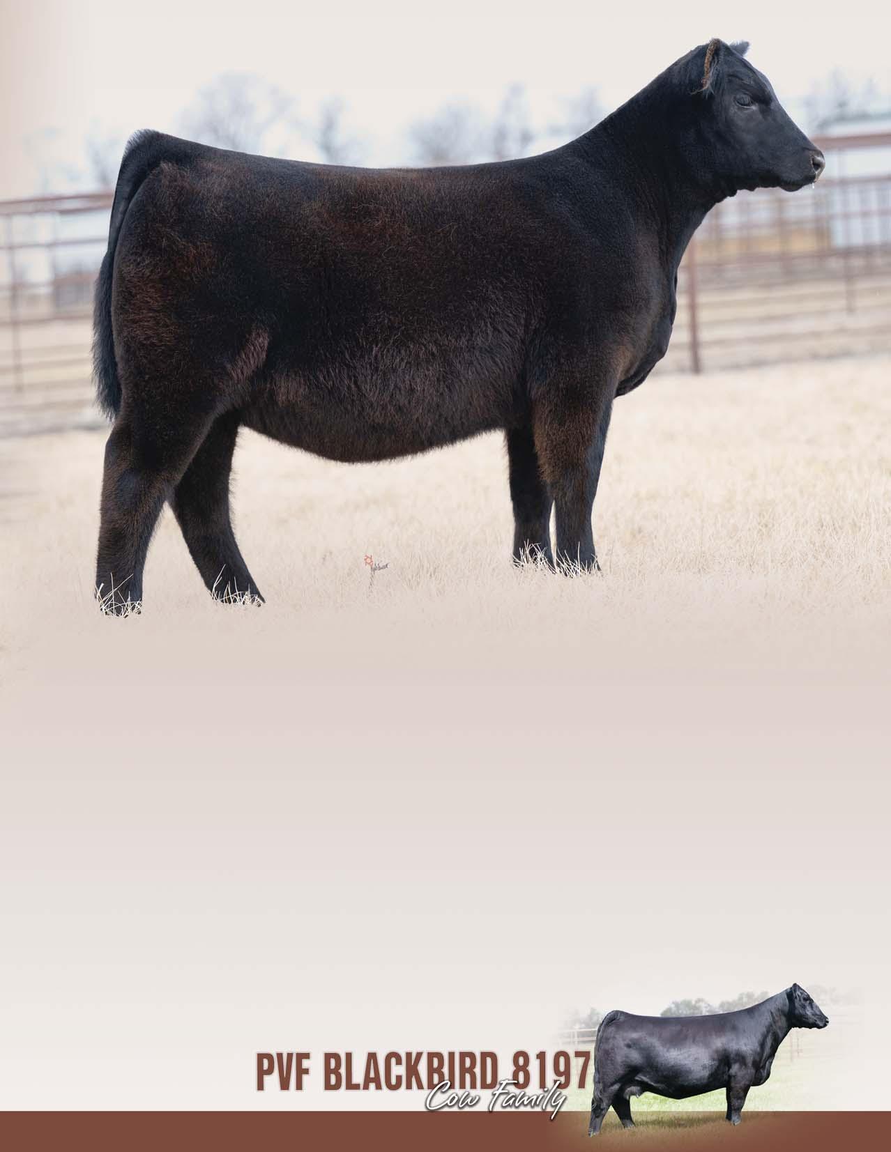 The Blackbird cow family stamps as much stoutness and power of presence as anything on the farm, and Lot 6 combines an elite show heifer style and look. This heifer’s dam, PVF Blackbird 2201 is a direct daughter of PVF Blackbird 3127 and is a maternal sister to the ABS/Griswold/Webster sensation PVF The Natural 7042. The Blackbird cow family also produced PVF Blacklist 7077, as well as grand champion females at virtually every National Angus Show in the country. Lot 6 exemplifies why we are so excited about her dam’s future in our donor pen.