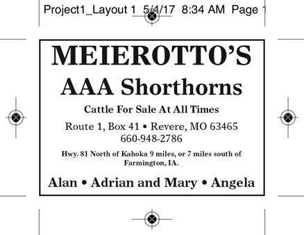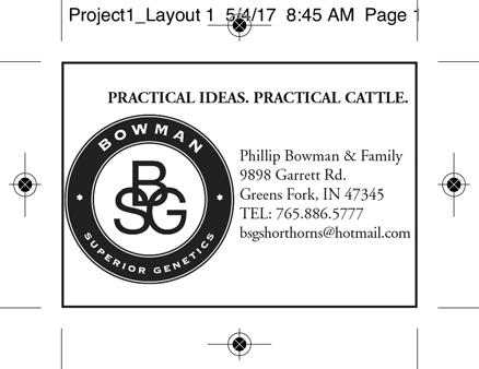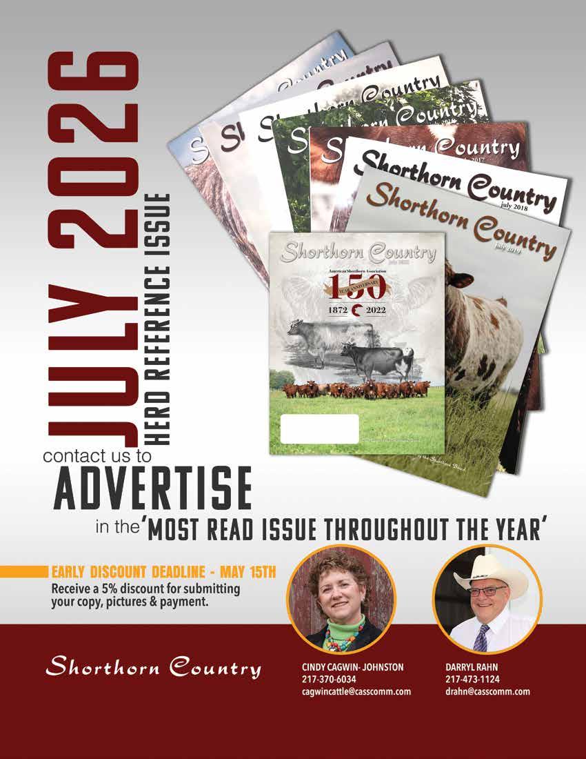 (ISSN 0149-9319) Published monthly (except June) by the American Shorthorn Association, 7607 NW Prairie View Rd., Platte Woods, MO 64151. Subscription rates are $24.00 for 1 year, $38.00 for 2 years, and $52.00 for 3 years in the U.S.; $60.00 for 1 year, $110.00 for 2 years, and $130.00 for 3 years to Canada and $120.00 for 1 year, $220.00 for 2 years, and $300.00 for 3 years to other foreign countries. Periodicals postage