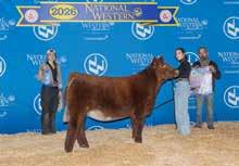 $7,100 - Lot 15 - Open Heifer - RDY Augusta Pride 504 UH ET. A roan, polled March 2, 2025 daughter of CF S/F Upper Hand X ET and out of CF CSF Augusta Pride 8147 EL ET. Another of the strong set of young show heifers in this sale. This one is really good. Her dam was the Grand Champion Heifer at the 2020 Junior National Show. This one could be in the hunt in her future. She is special. Offered by Maddox Reedy and purchased by Reesland Whisman of Illinois City, Illinois.