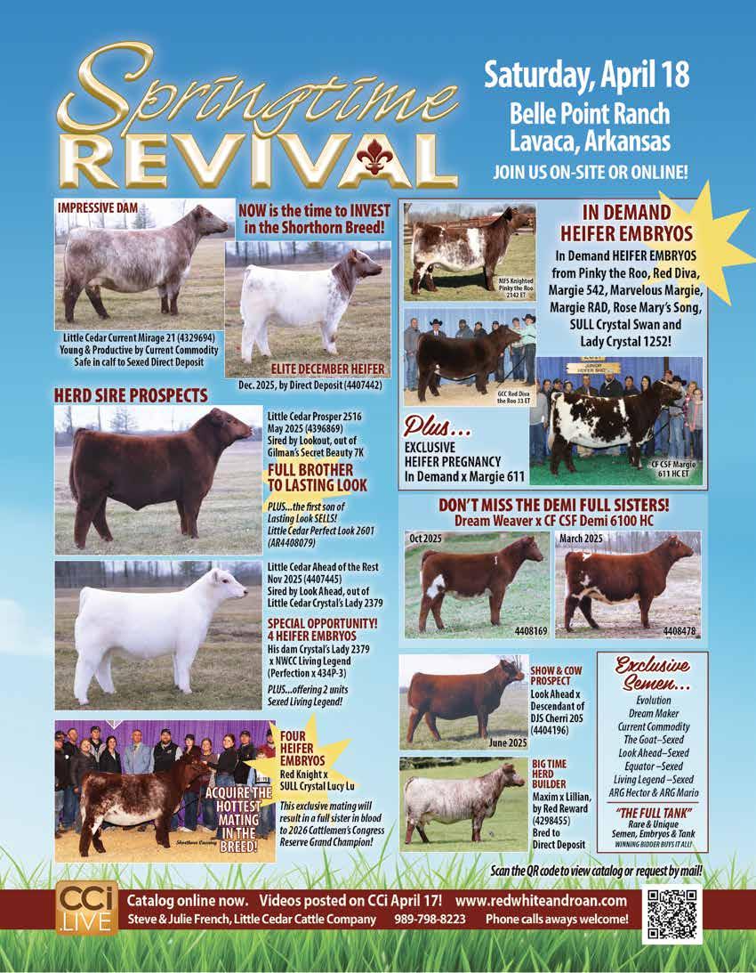 April 11 - Lazy Bar F and Double G Shorthorns “Red Dirt Treasures” Shorthorn Production Sale, Seminole, Okla.