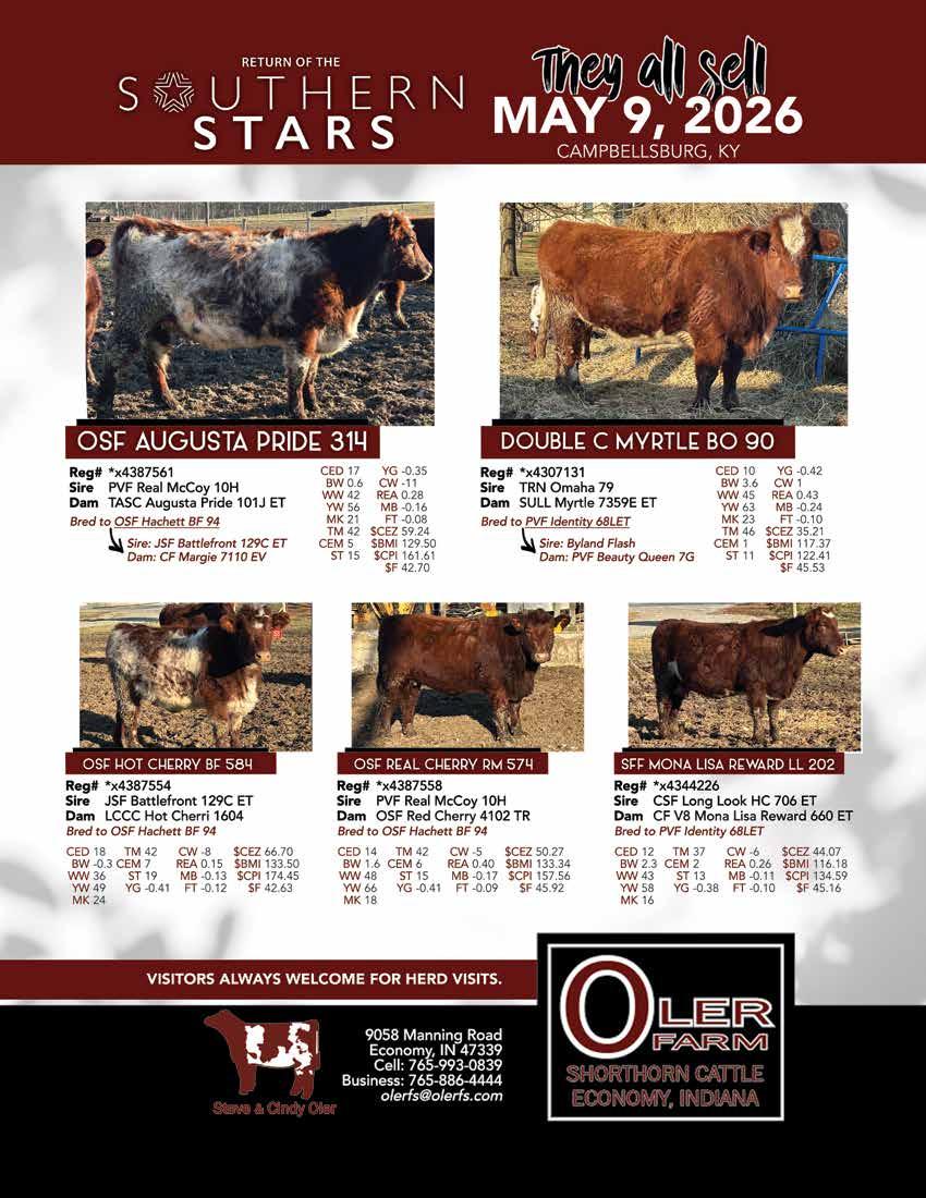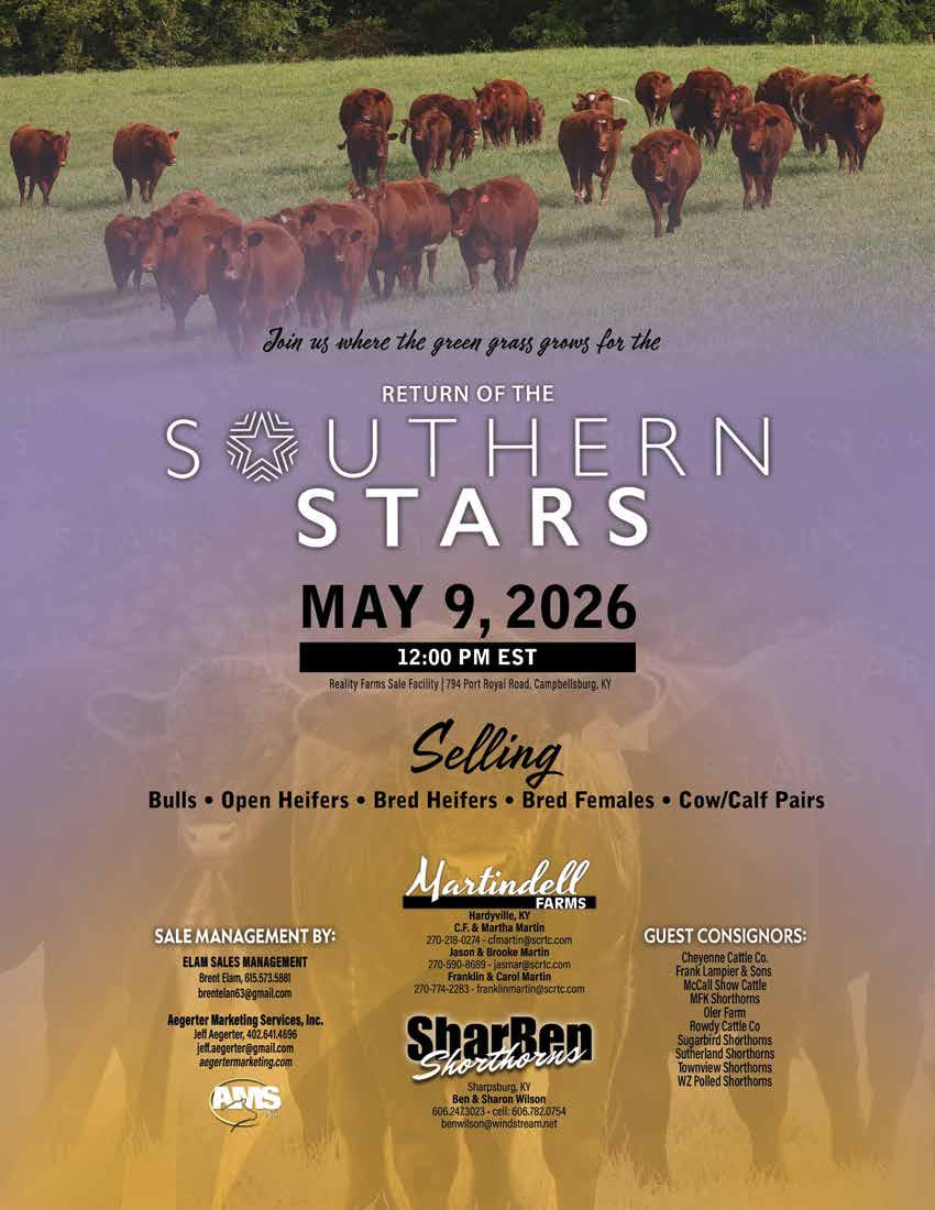 May 9 - SharBen Shorthorns and Martindell Shorthorns “Return of the Southern Stars” Sale, Campbellsburg, Ky.