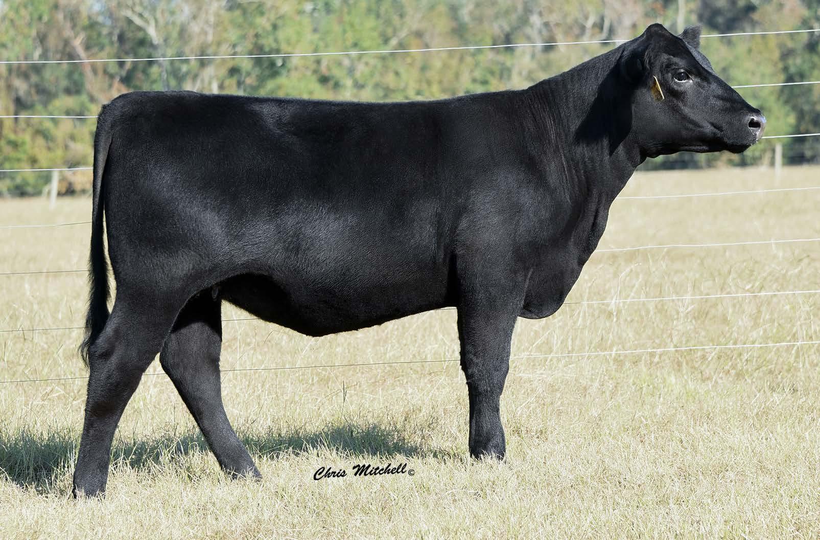 is a direct daughter of the Ogeechee Sunrise 6023. She is now serving in the Butz-Hill donor arsenal where she is making a splash on the leader board. This female has it all; low birth weight, explosive growth curve, elite carcass merit and outrageous $Values. Check it out--17 traits in the top 15% of the breed.