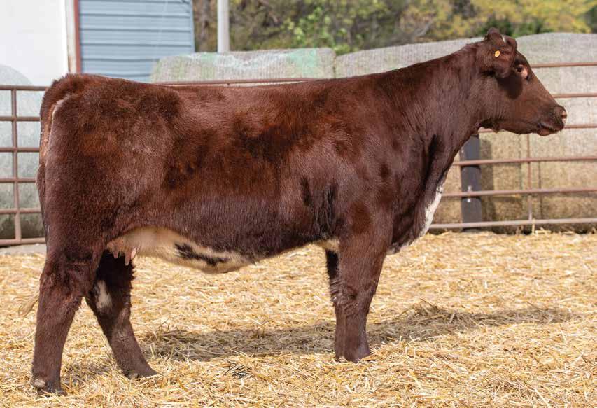 A Shorthorn Plus, Dual Threat X Rose. This mating has worked ask the Miller family of Illinois. Their selection from the 2019 Showcase is hitting her stride in the donor pen. Her All Me heifer calf was a high seller this fall and a division champion at the 2022 Illinois State Fair. Lot 29 sells bred to Hot Investment.