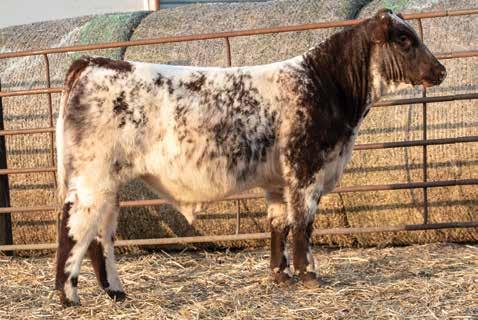 We strive to raise herd sires from our cow families. The Anndelle cow family has raised DJS The Outsider, DJS The Insider, and DJS Hot Investment. Our young herd sire is DJS Reloaded out of the Cherri cow family. His first calf crop is small in numbers yet strong in quality. Excit ed about his future. The bull battery may be a little unknown to many of you so check out the reference sires’ pictures. Many of the offspring and Breds are to our Hot Invest ment sire who is also calving ease. We have great confidence and excitement as to what these two sires offer to the Shorthorn breed.